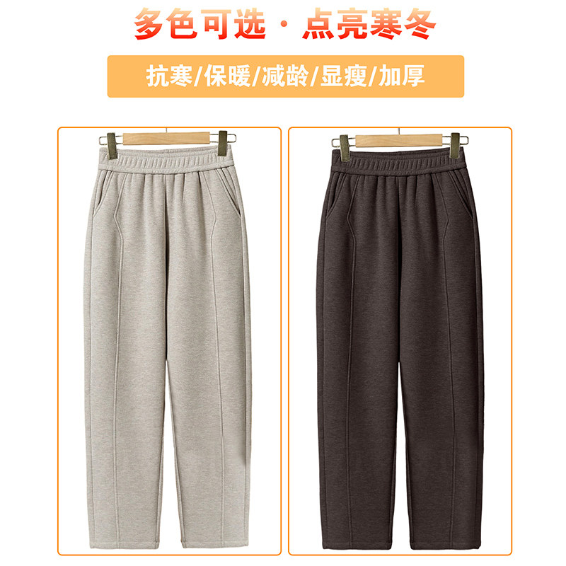 中年妈妈冬季加绒加厚直筒裤中老年人女裤秋冬高腰休闲女款长裤子