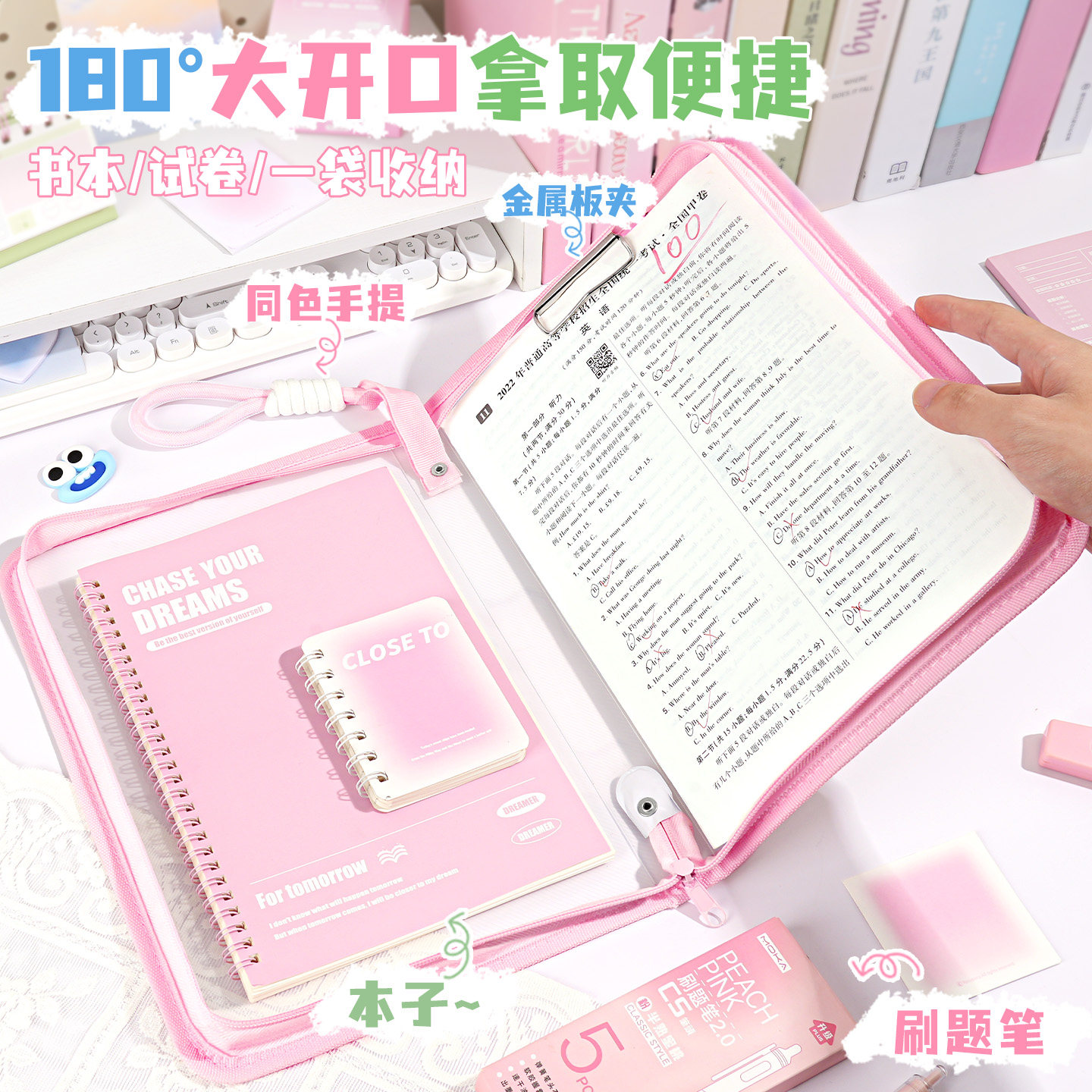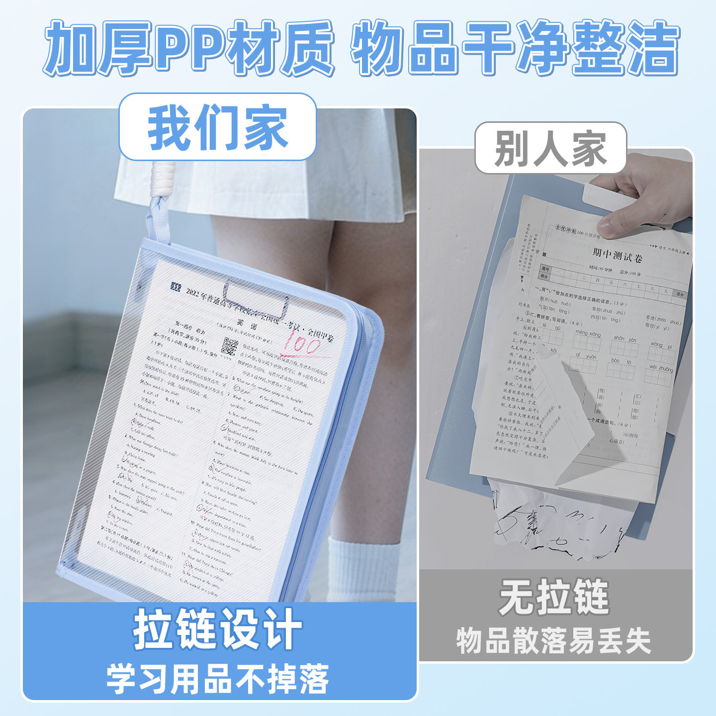 可手提!A4试卷袋透明文件收纳袋拉链式初中生专用资料袋高中生大容量手提袋学生拎书补习袋小学生科目分类袋