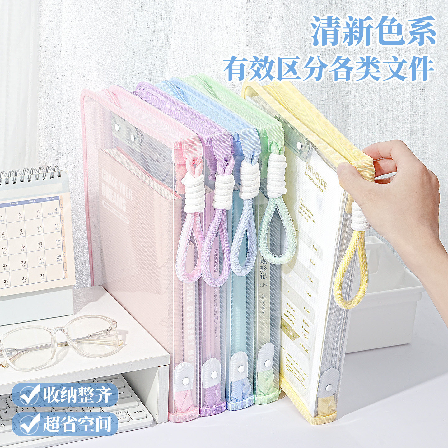 晨光文具学科科目分类袋小学生文件袋拉链式试卷收纳袋透明网纱双层大容量书袋作业资料a4考试专用袋票据产检
