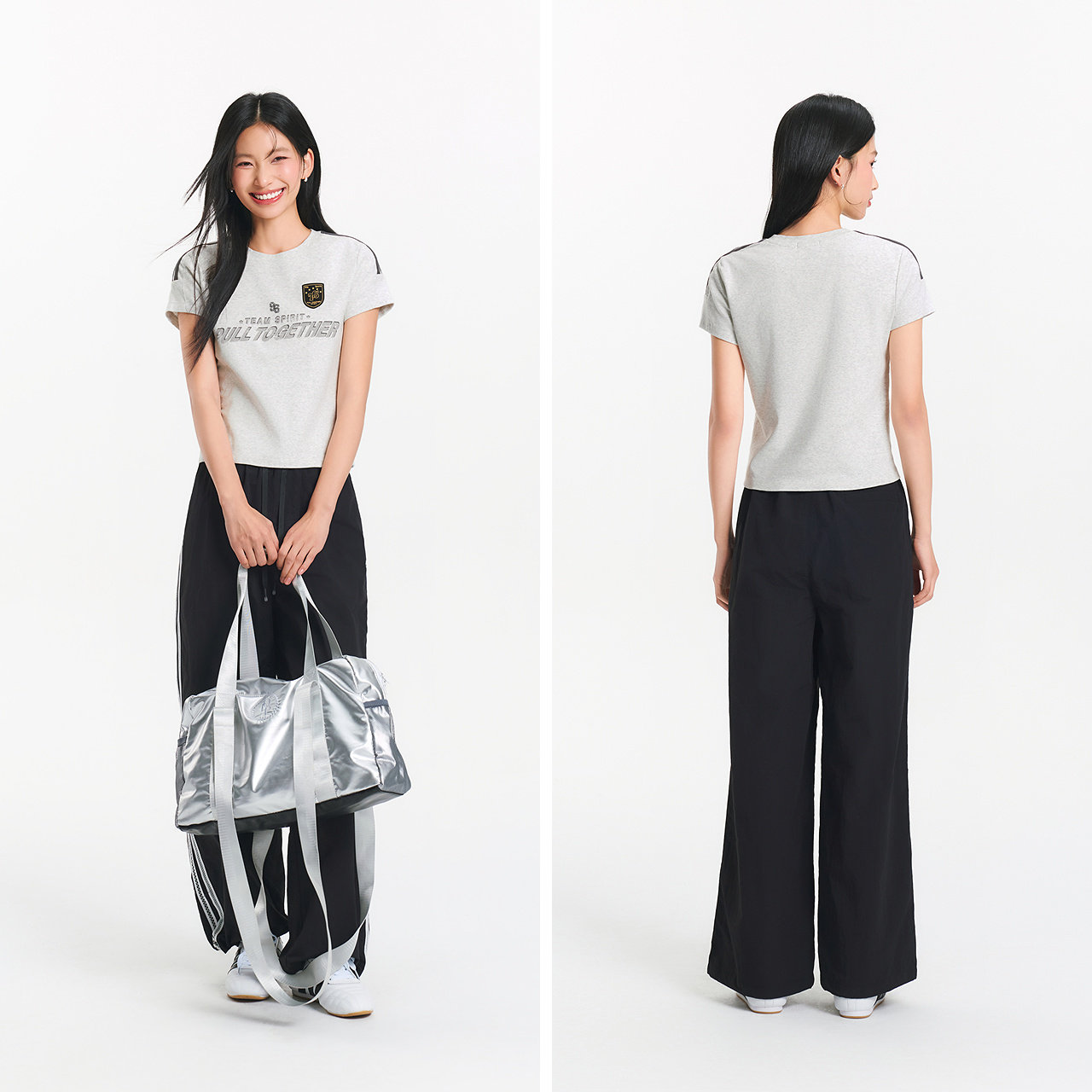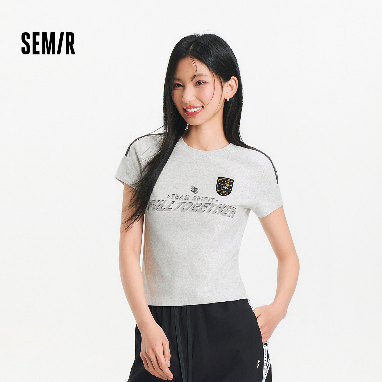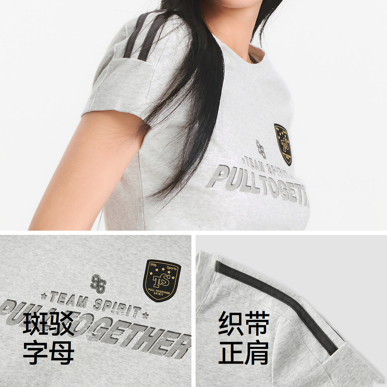 森马短袖T恤女夏季短款修身字母印花正肩上衣美式复古运动风衣服