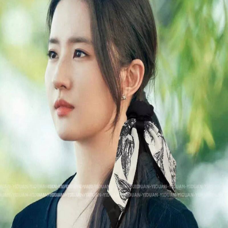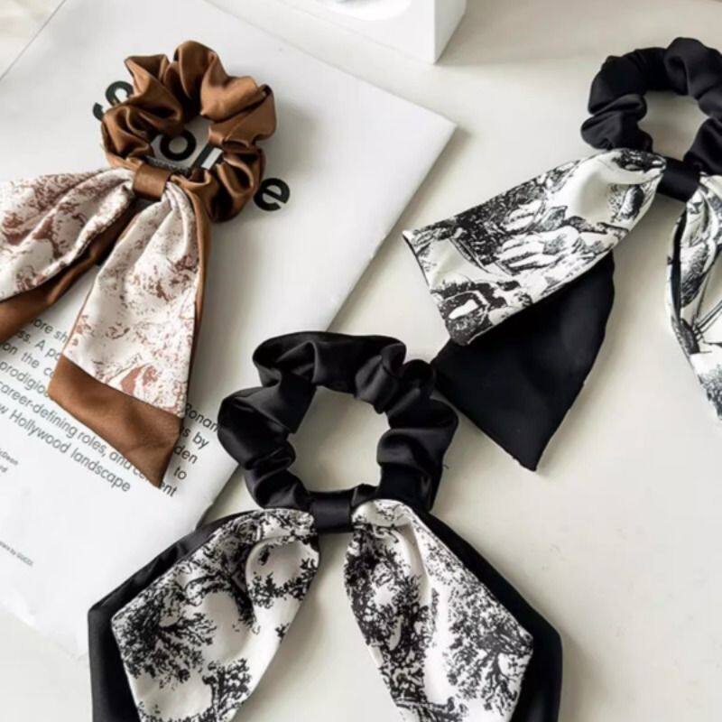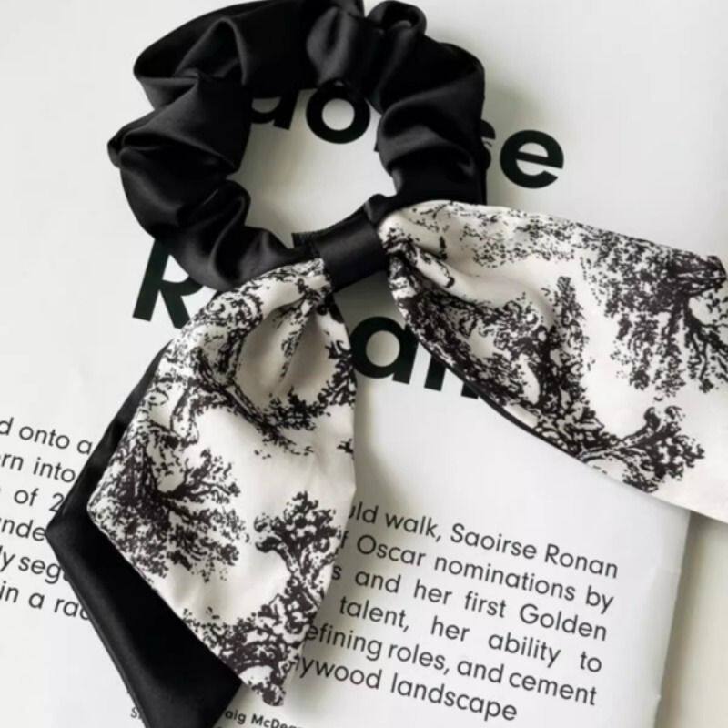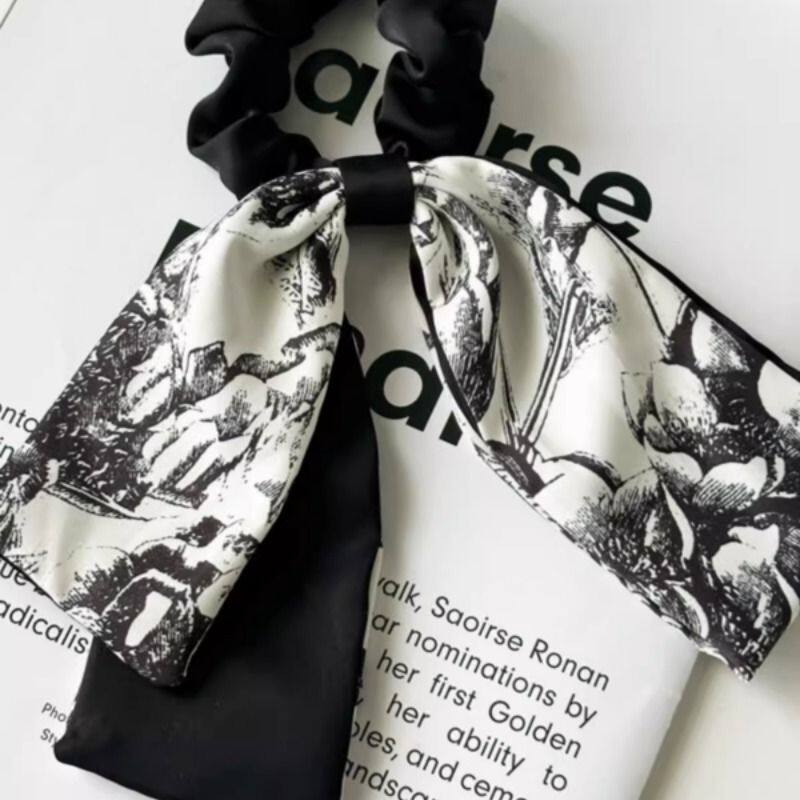 法式复古印花飘带发圈气质发带女绑发优雅大肠圈头绳精致马尾发绳