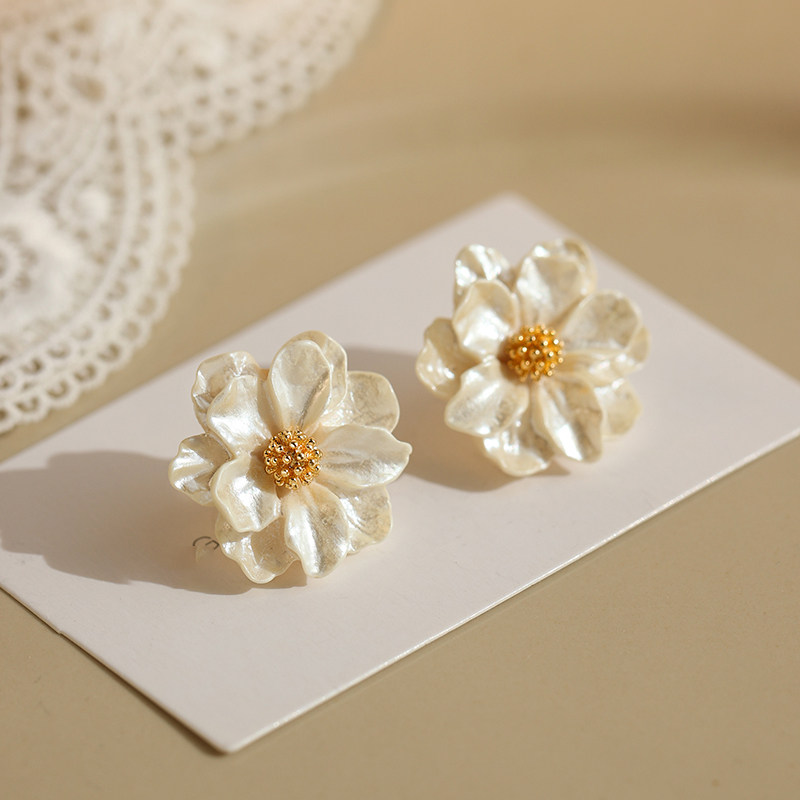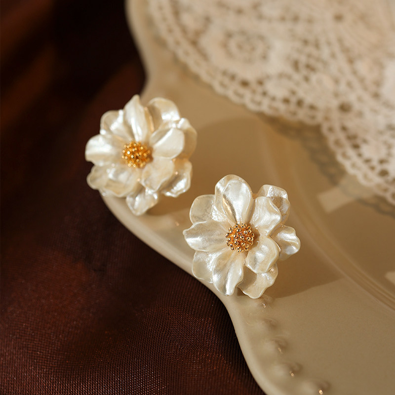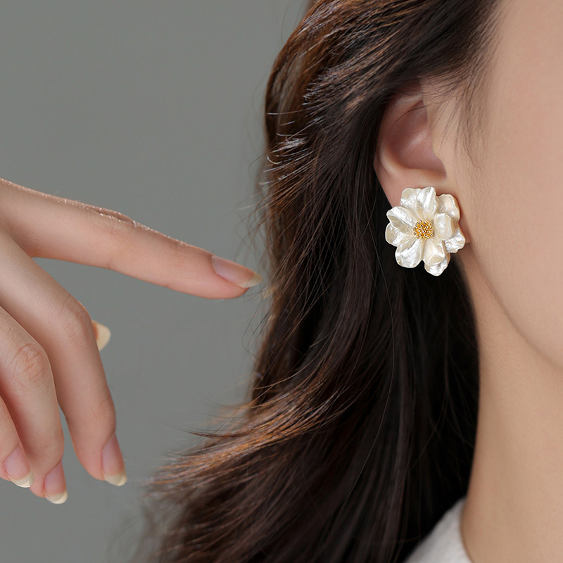 925银针山茶花耳钉女小众设计感气质耳环2025新款高级感轻奢耳饰