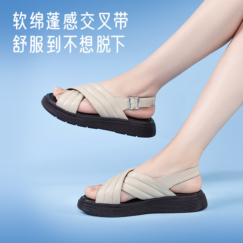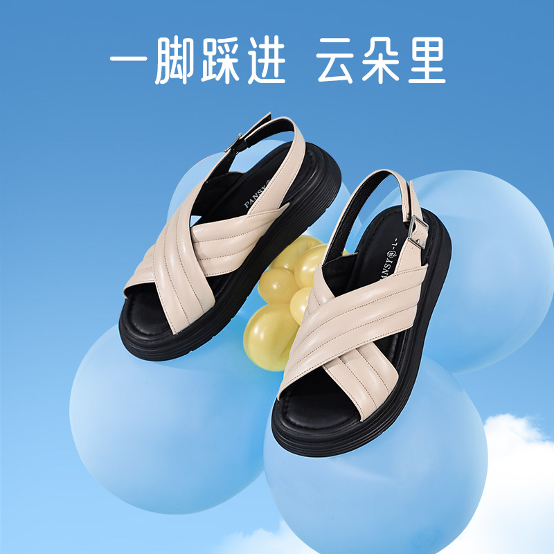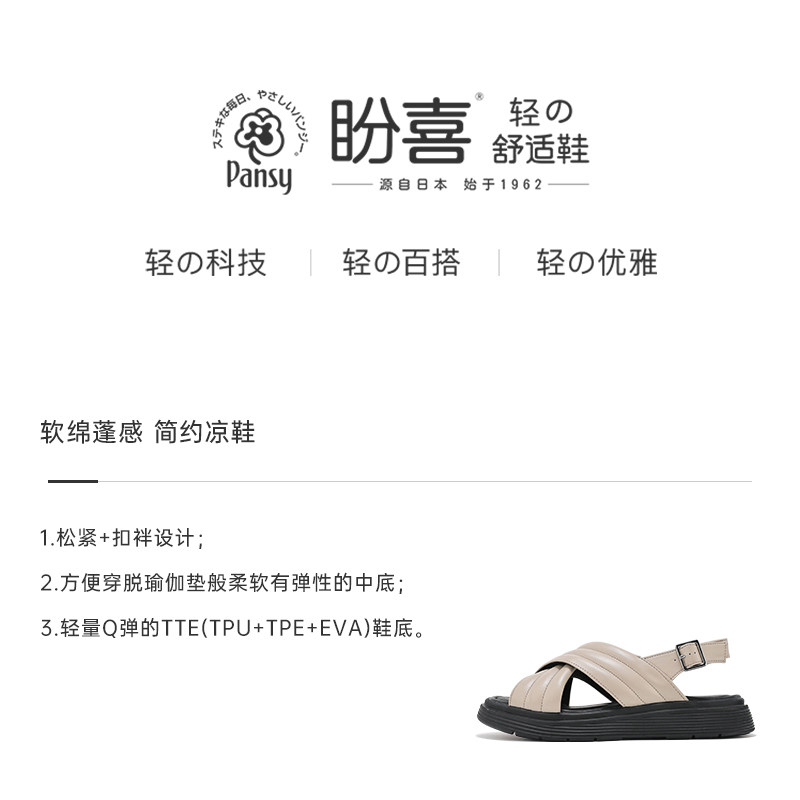 Pansy盼喜日本新款女士时尚交叉带柔软舒适凉鞋轻便厚底防滑女鞋