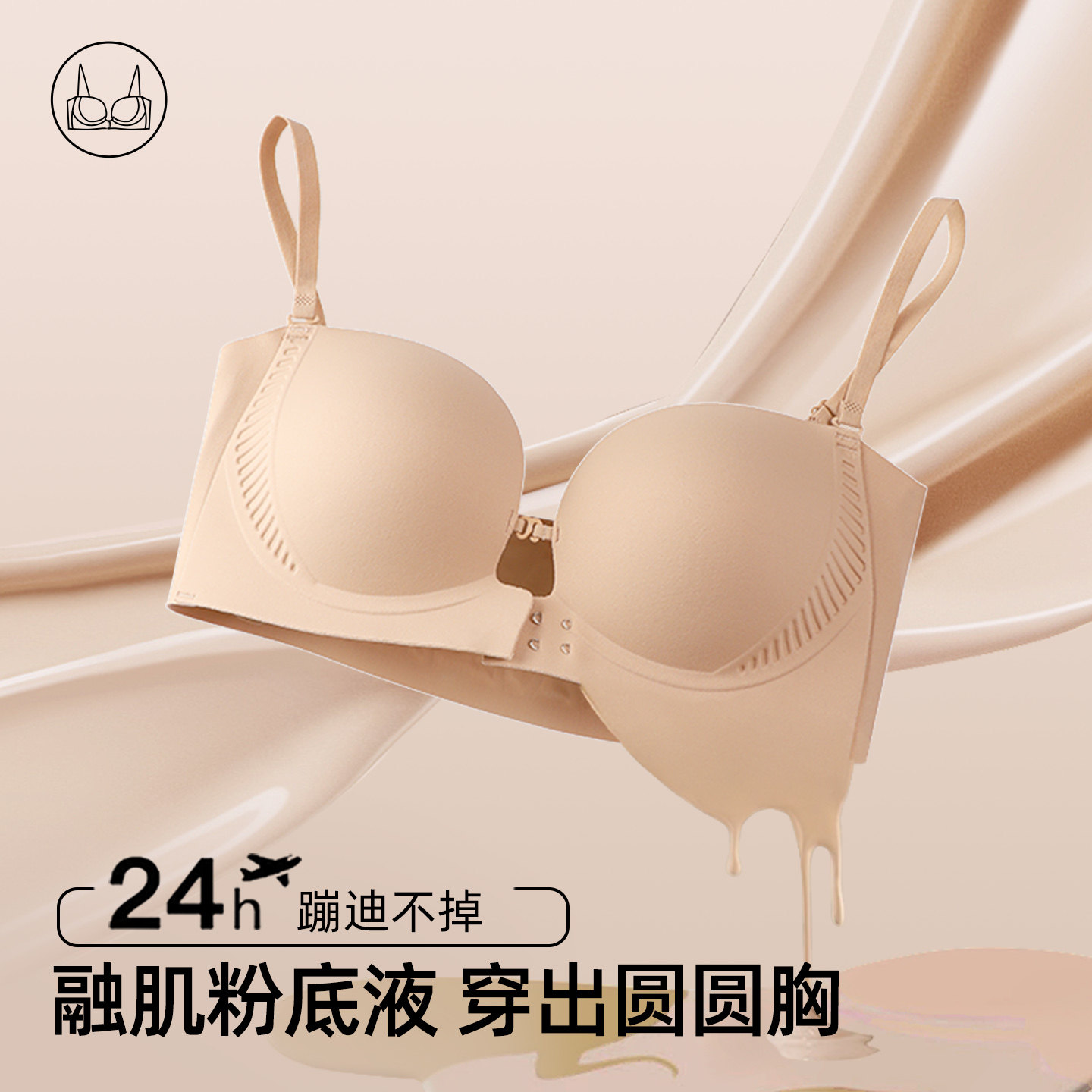 无肩带内衣防滑聚拢斜肩夏薄款前扣裹胸无痕抹胸隐形粉底液文胸罩