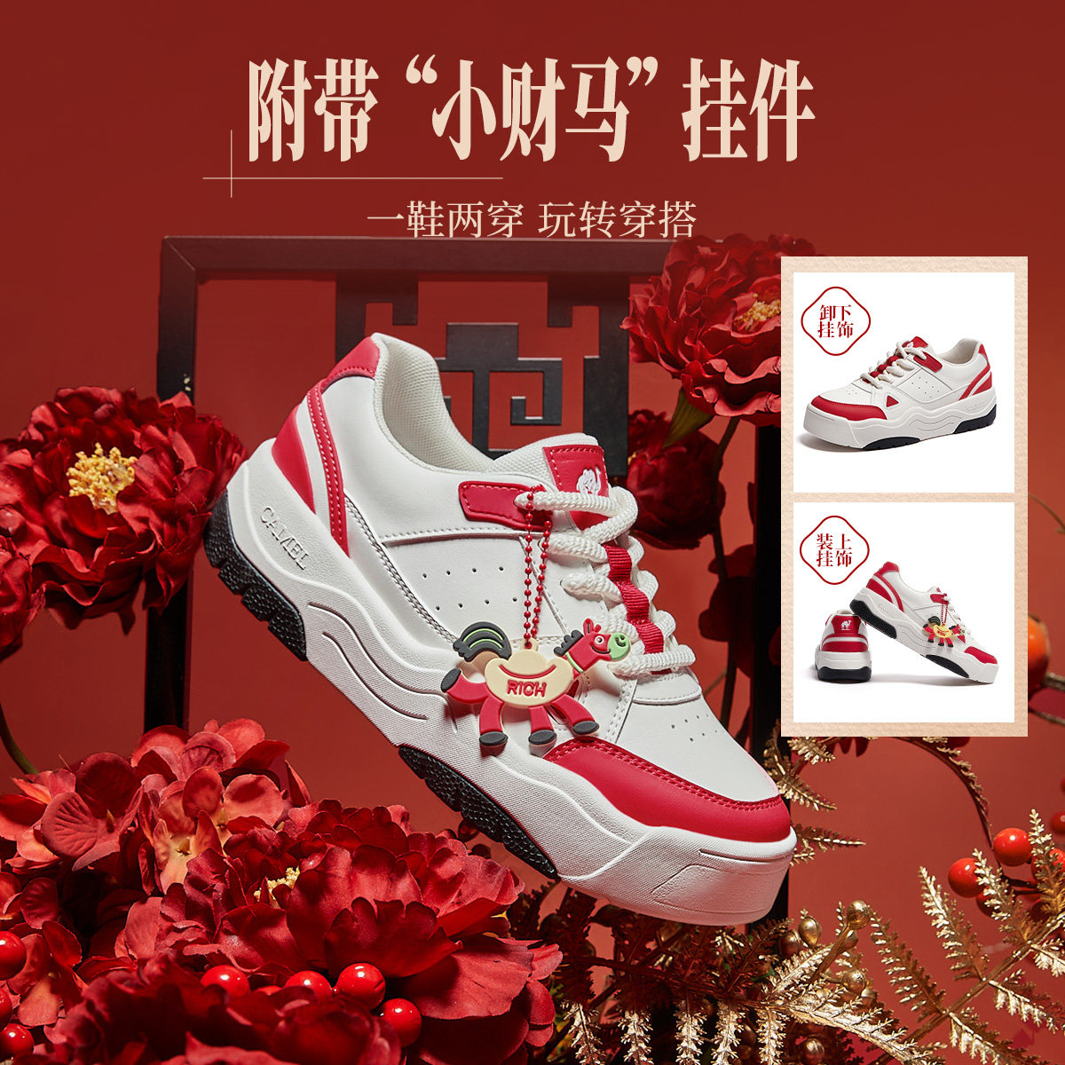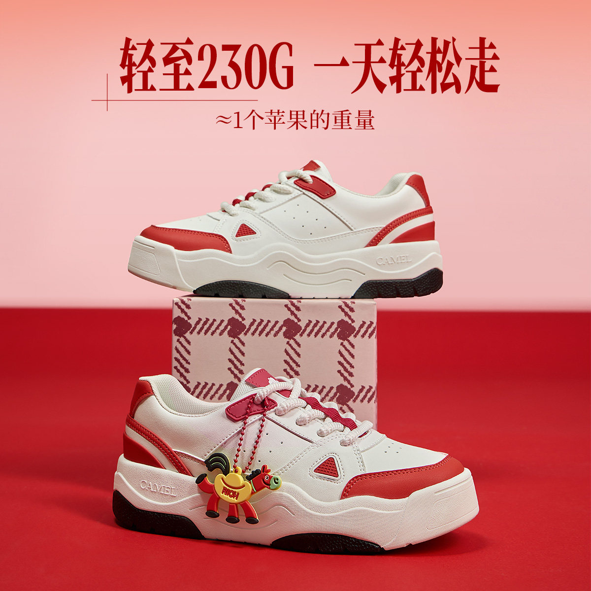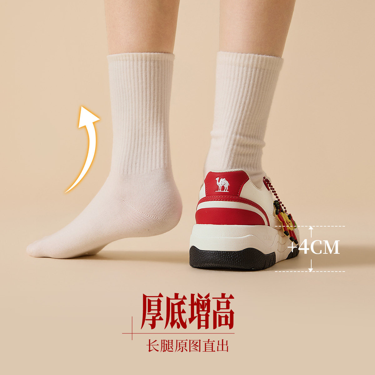 骆驼女鞋2026春季新款百搭小白鞋休闲运动鞋滑板鞋女厚底增高板鞋