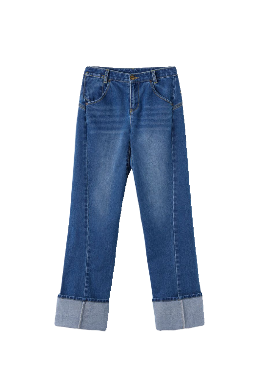 森柔牛仔|商场同款森马牛仔裤女翻边长裤2025秋季新款宽松阔腿裤