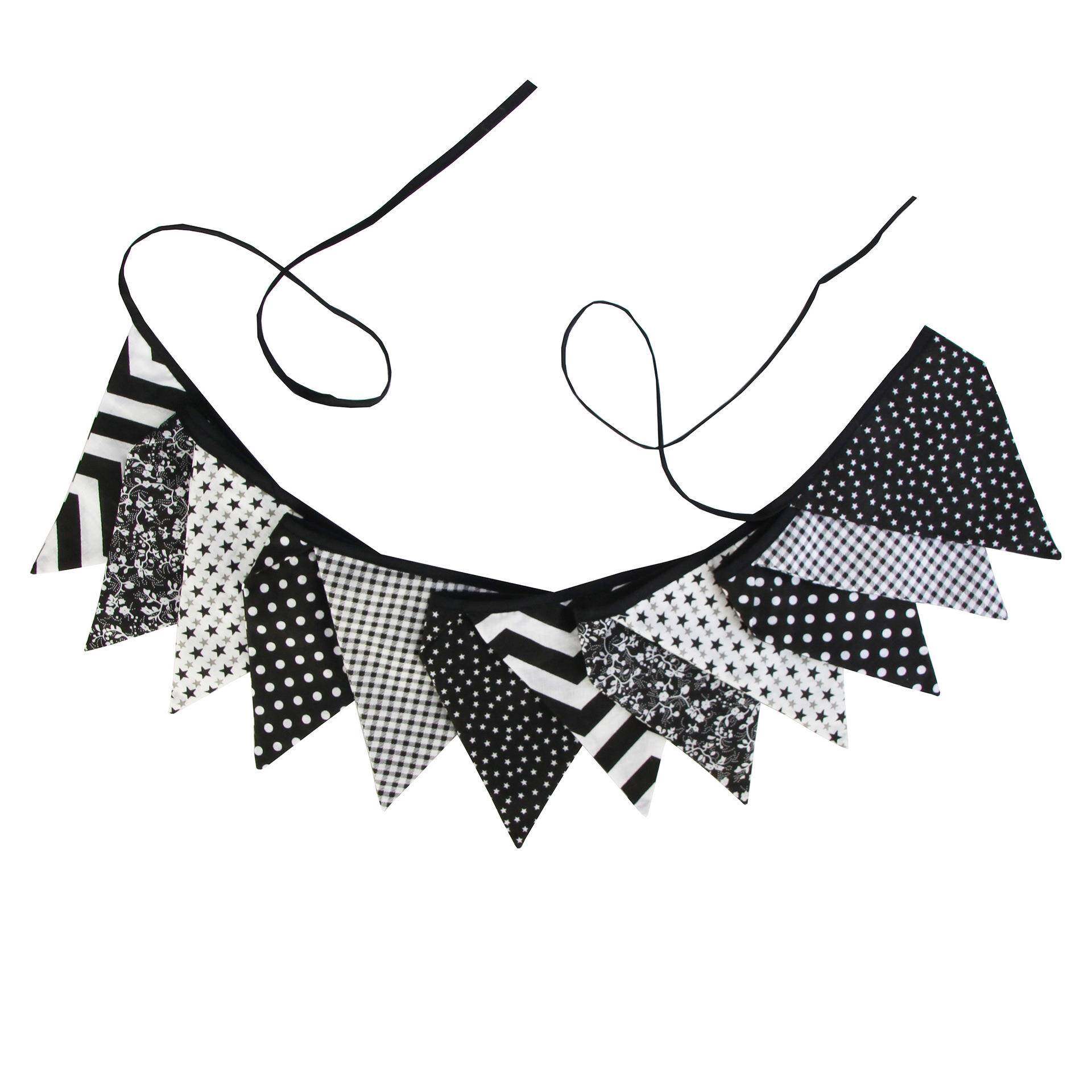 黑白灰棉布三角串旗帐篷旗婴儿拍照背景婚庆生日幼儿园布置挂旗