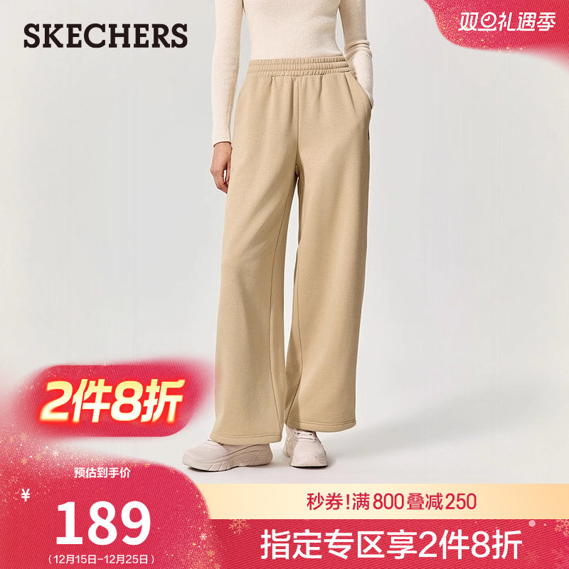斯凯奇2025冬季新款女裤直筒阔腿裤休闲运动长裤加绒裤子保暖卫裤