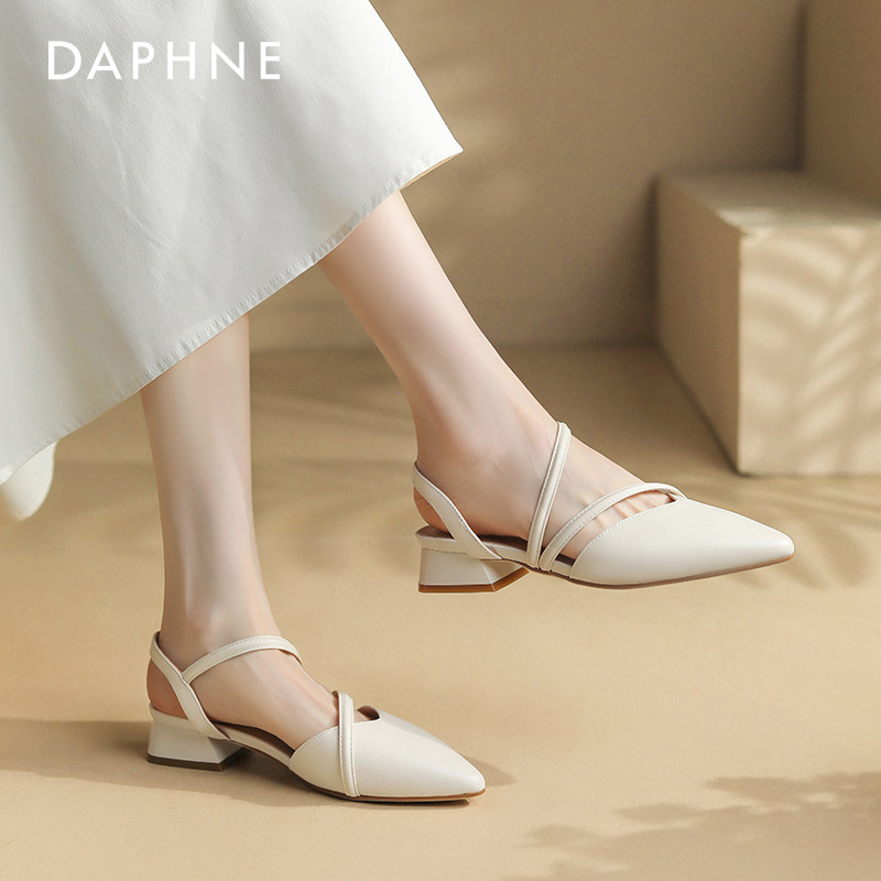 达芙妮包头凉鞋女款2026新款夏季外穿法式小凉拖百搭粗跟尖头女鞋