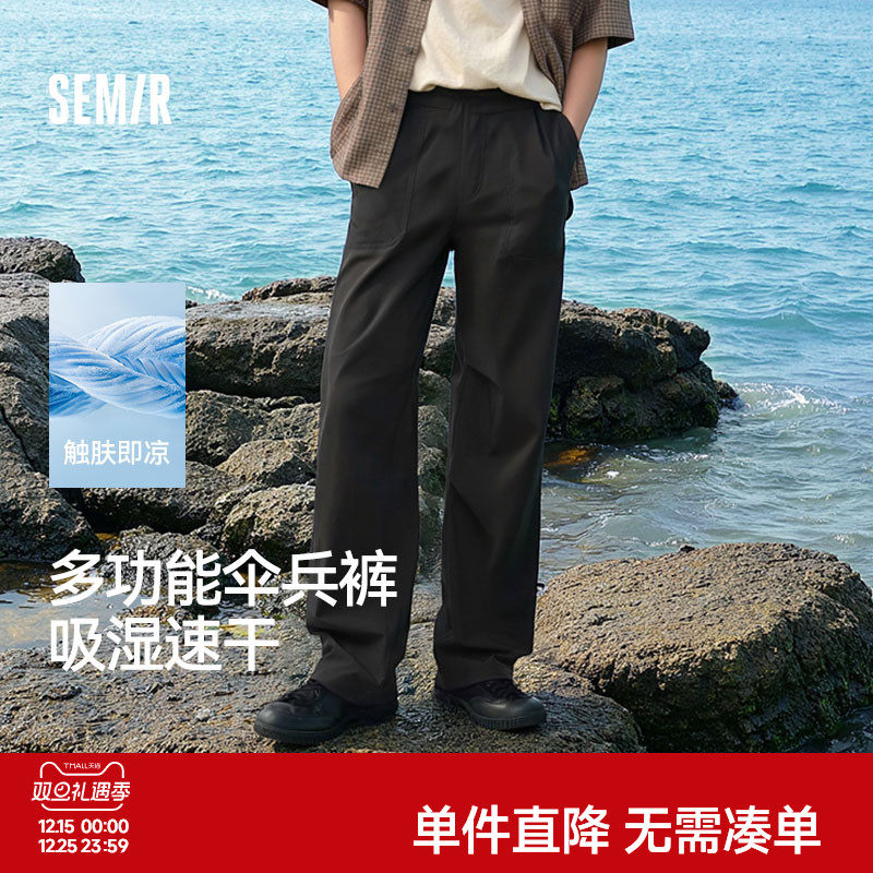 森马吸湿速干伞兵裤男2025夏季新款直筒裤百搭黑色美式工装裤凉感