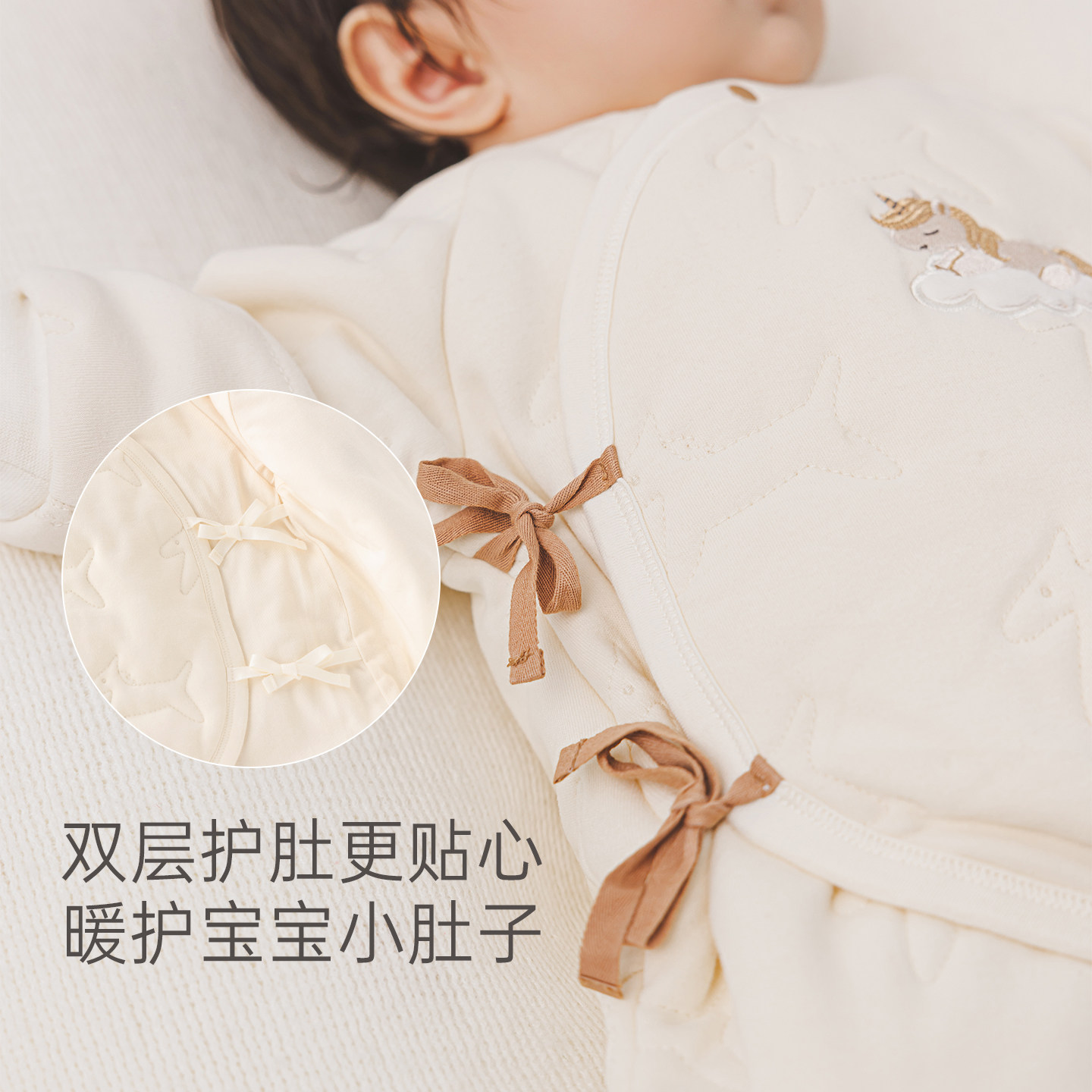 木生棉秋冬季新生儿夹棉绑带连体衣初生婴儿宝宝保暖发热棉服哈衣