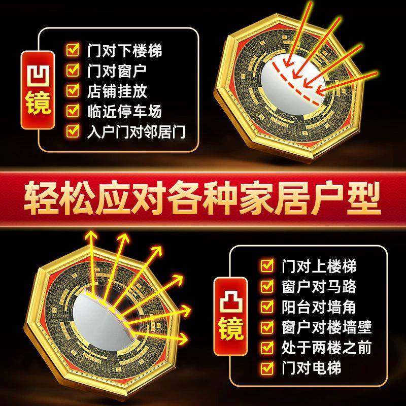八卦镜凸镜凹镜纯铜风水镜门口对反射镜大门窗户摆件房间凸面墙角