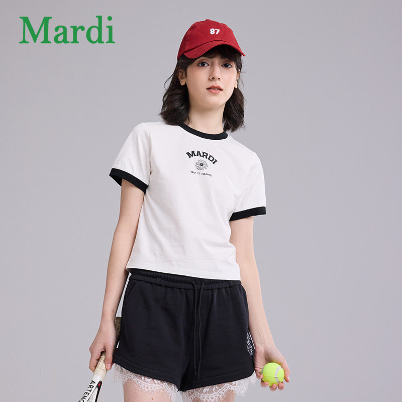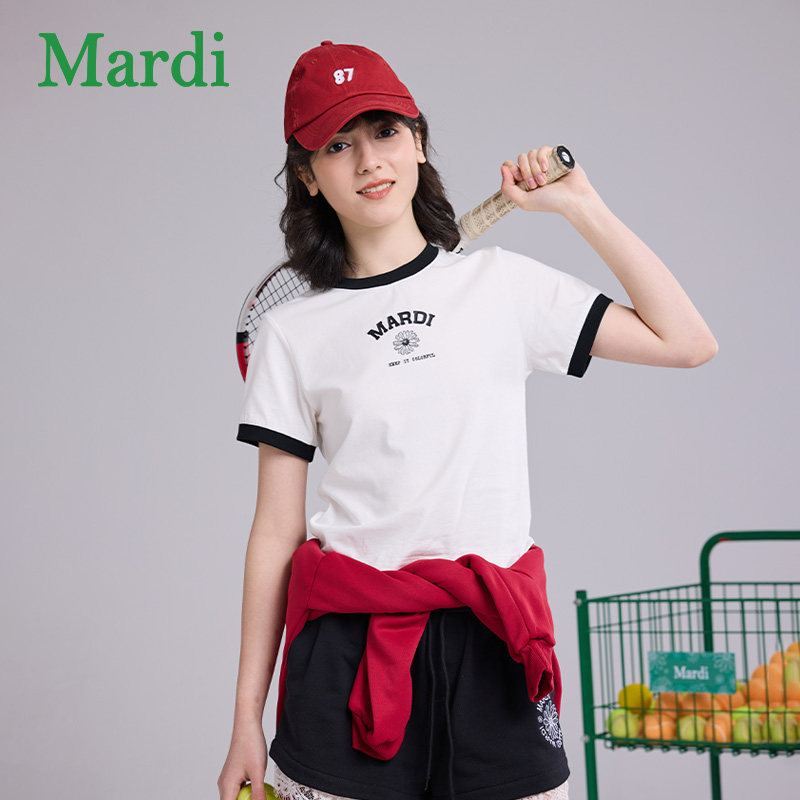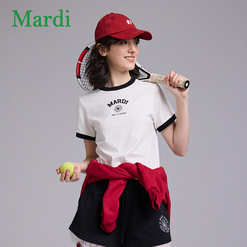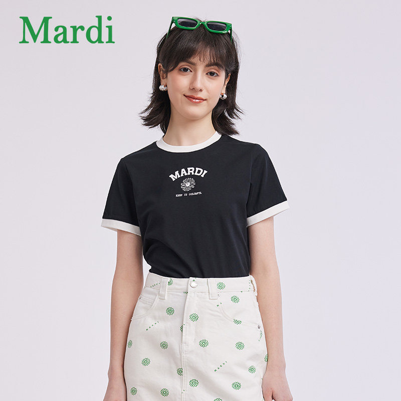 MARDI官方经典小雏菊撞色短袖T恤简约舒适纯棉圆领上衣女2026夏