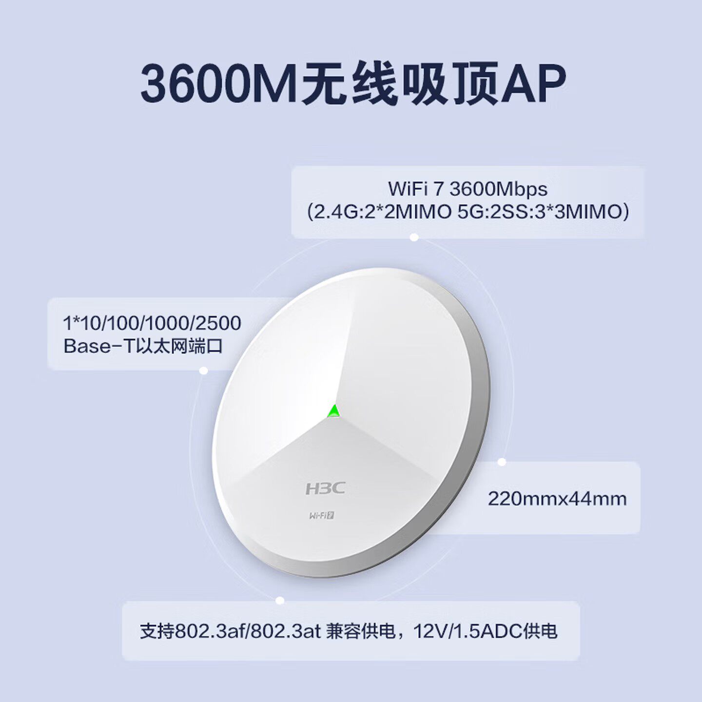 华三(H3C)WiFi7 2.5G无线吸顶ap双频3600M企业级全屋wifi路由器BE3600CQ大户型酒店别墅组网ER3208G5-HP