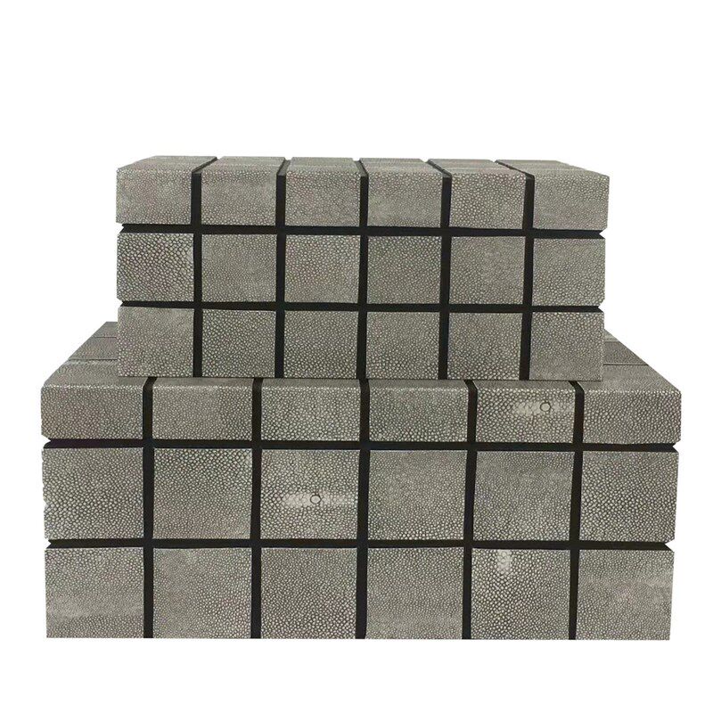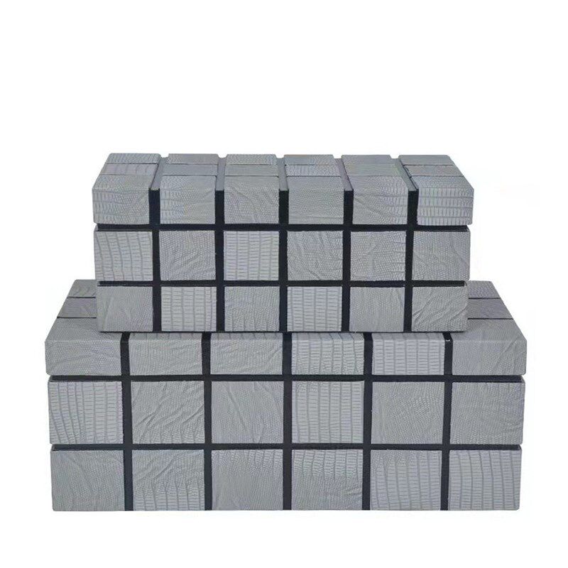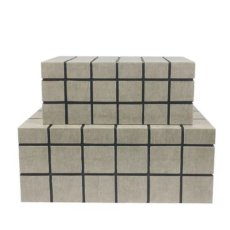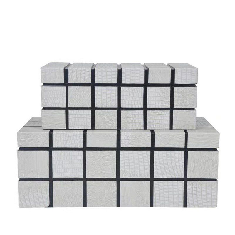 新中式方块格皮质k装饰盒饰品收纳盒工艺摆件样板房衣帽间软装居