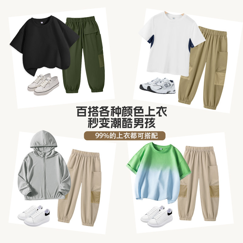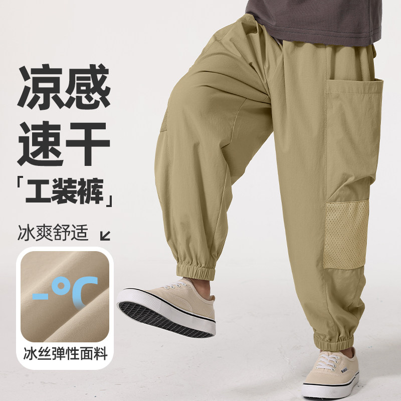 真维斯童装男童裤子夏季薄款大童冰丝运动裤工装裤儿童速干防蚊裤
