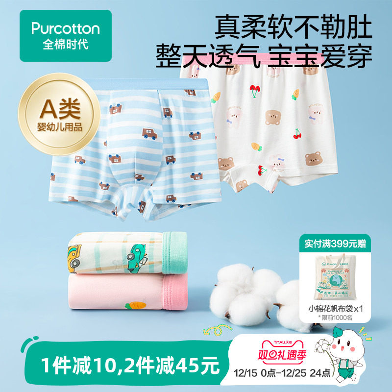 全棉时代2条装纯棉a类儿童内裤男女孩宝宝平角裤三角全棉打底短裤