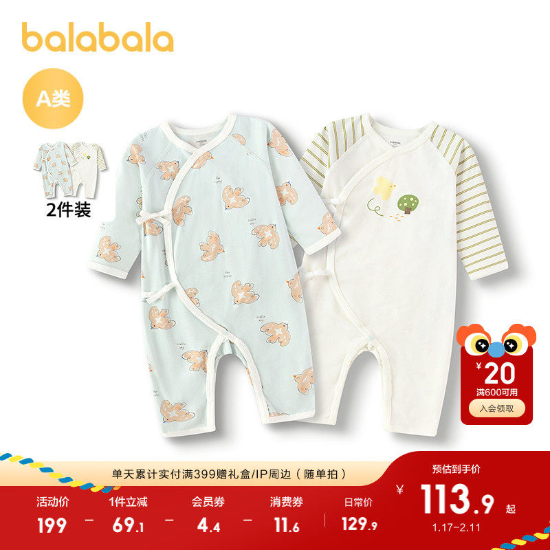 巴拉巴拉童装新生婴儿连体衣宝宝哈衣爬服睡衣2025新款两件装萌趣