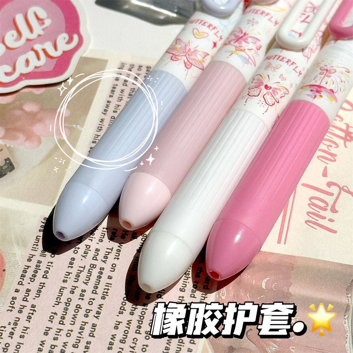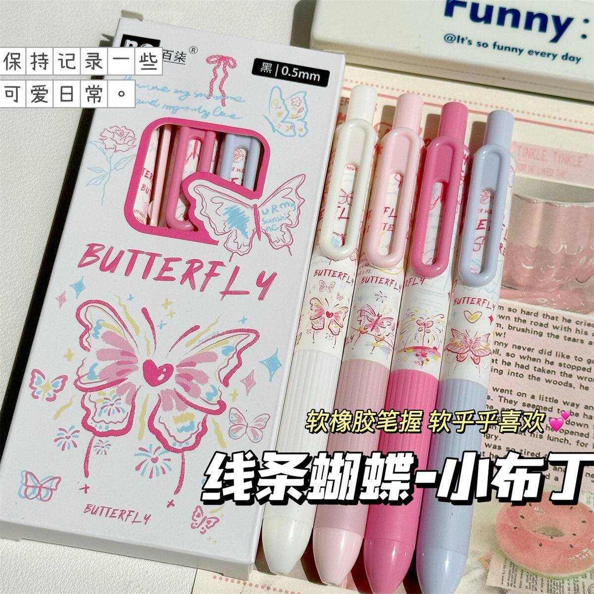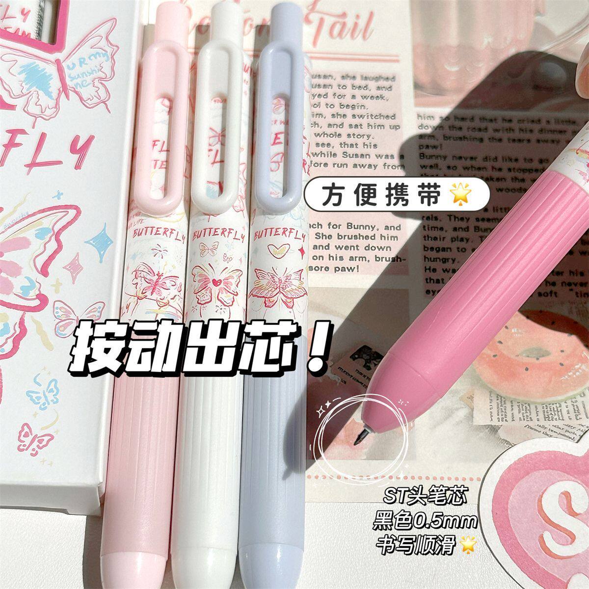 线条蝴蝶ins风高颜值少女心按动中性笔学生考试速干0.5刷题笔黑色