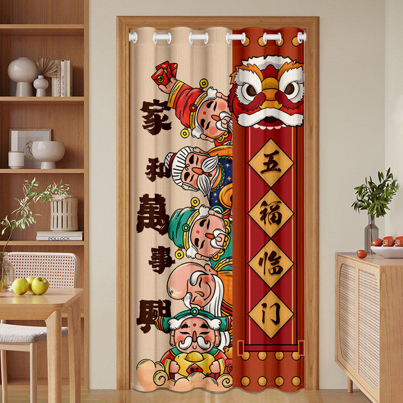 财神门帘隔断帘免打孔家用厨房客厅防寒保暖遮挡帘空调挡风挂帘子