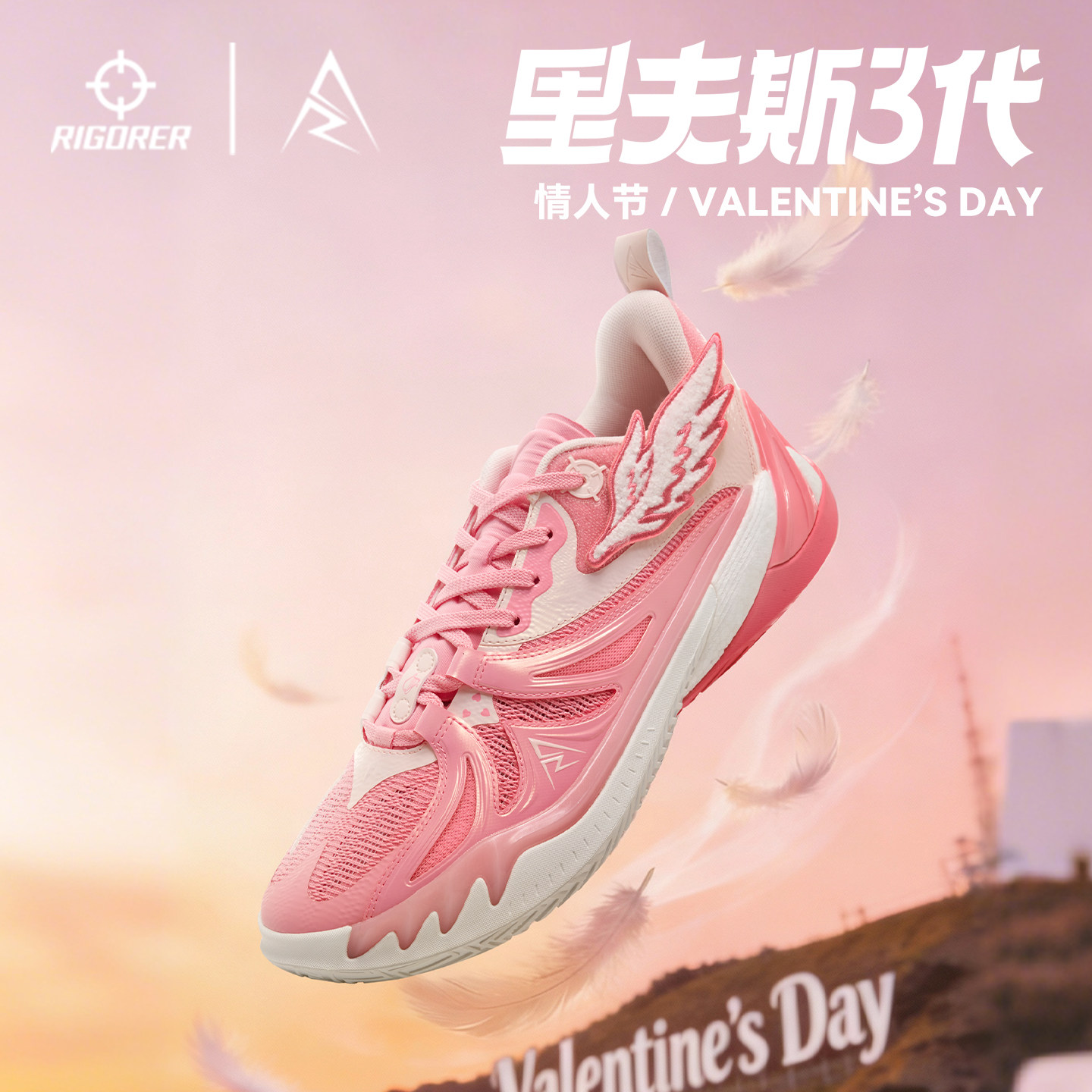准者里夫斯三代篮球鞋新款情人节低帮粉色轻便减震运动鞋男女同款