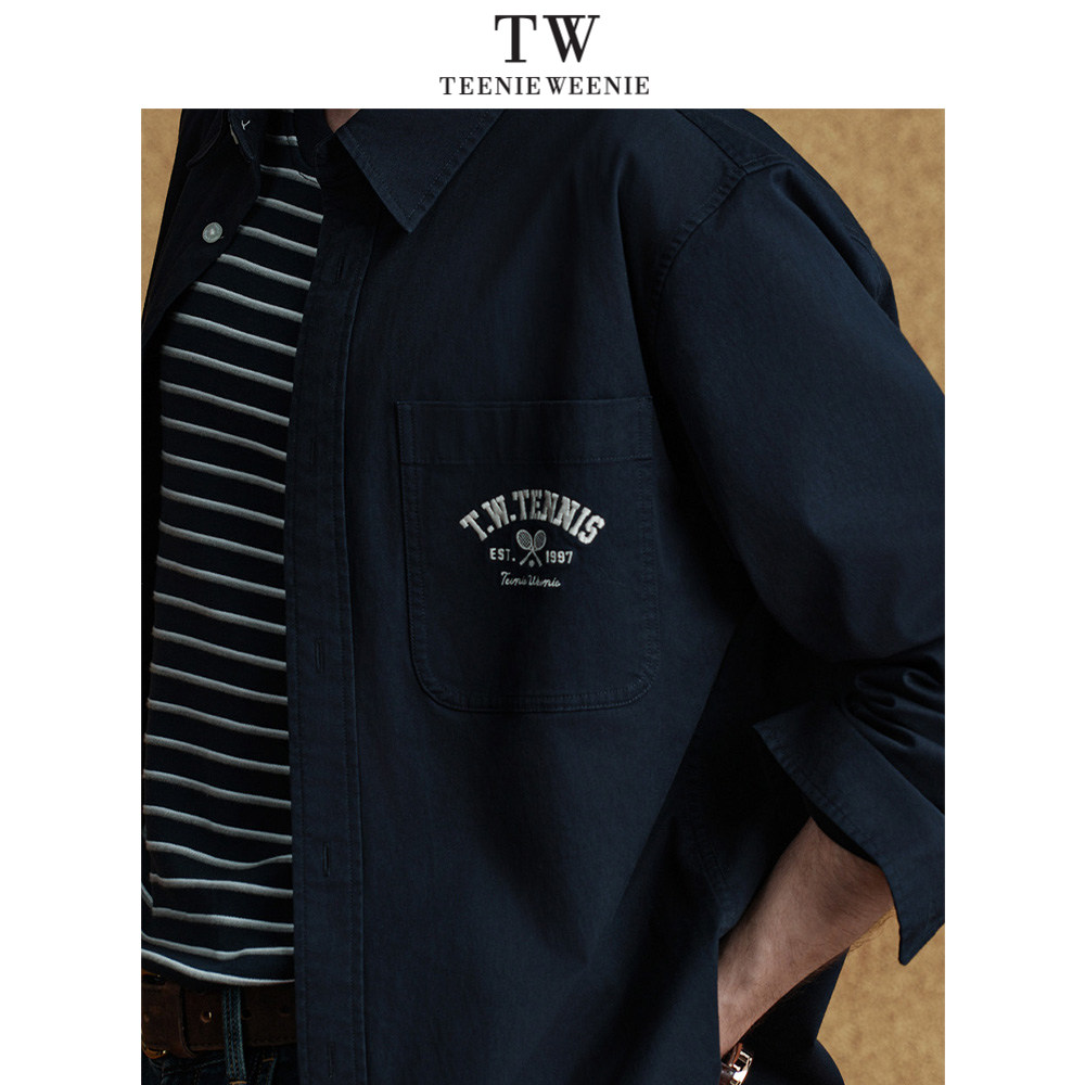Teenie Weenie小熊男装刺绣衬衫休闲长袖新款高级美式复古上衣