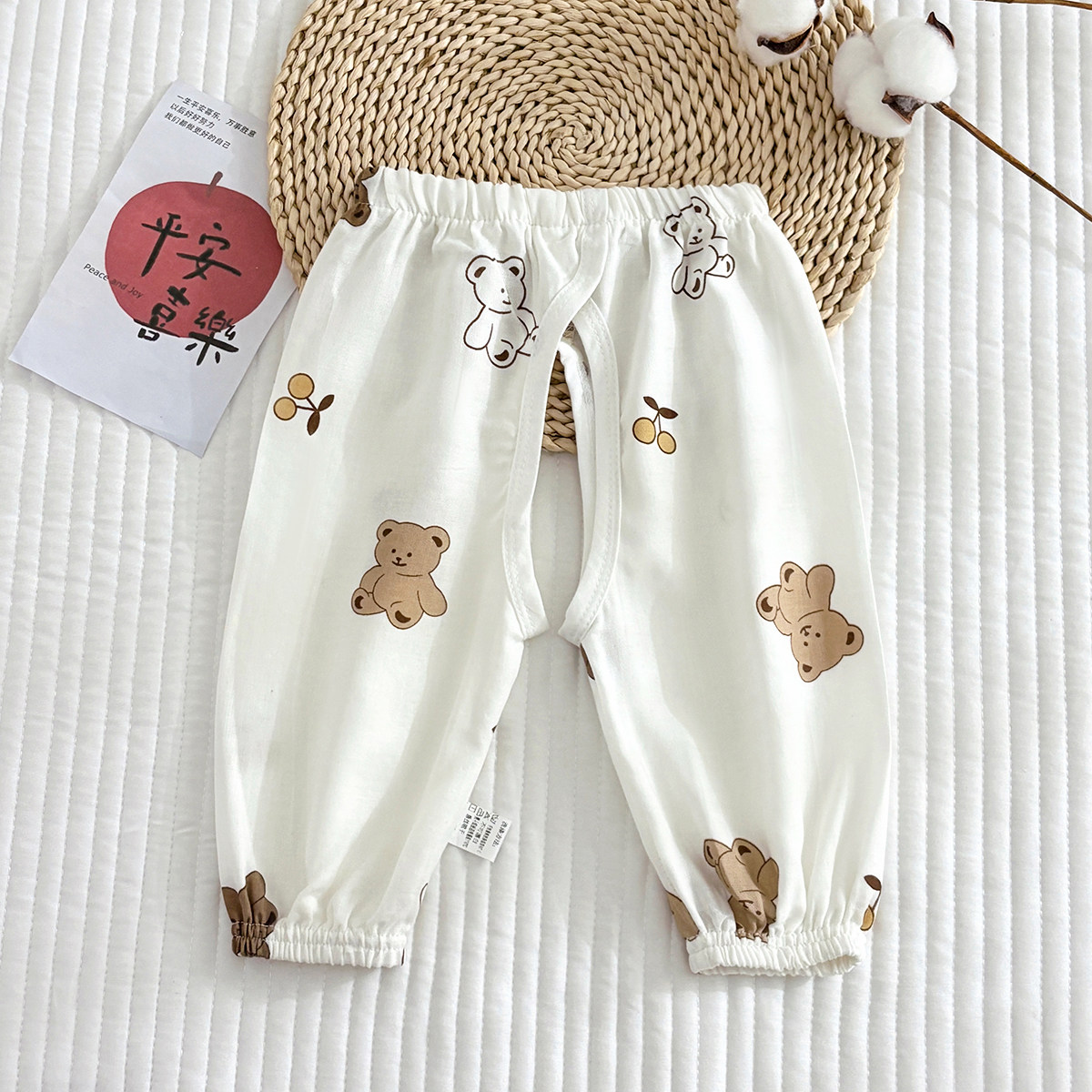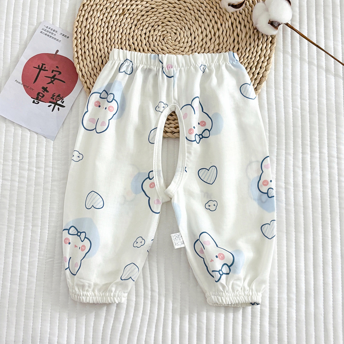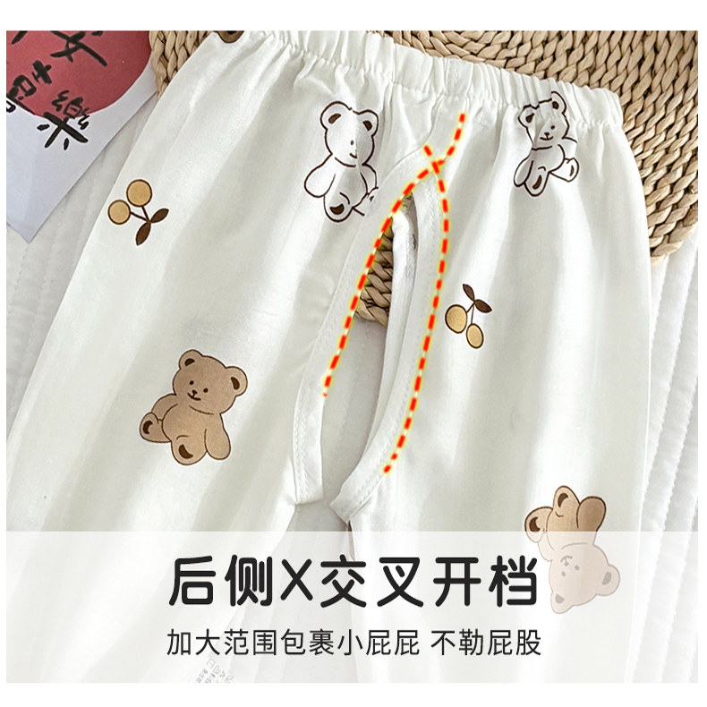男女宝宝开裆裤竹棉纱布薄款婴儿防蚊裤小童戒尿不湿裤子夏季a类