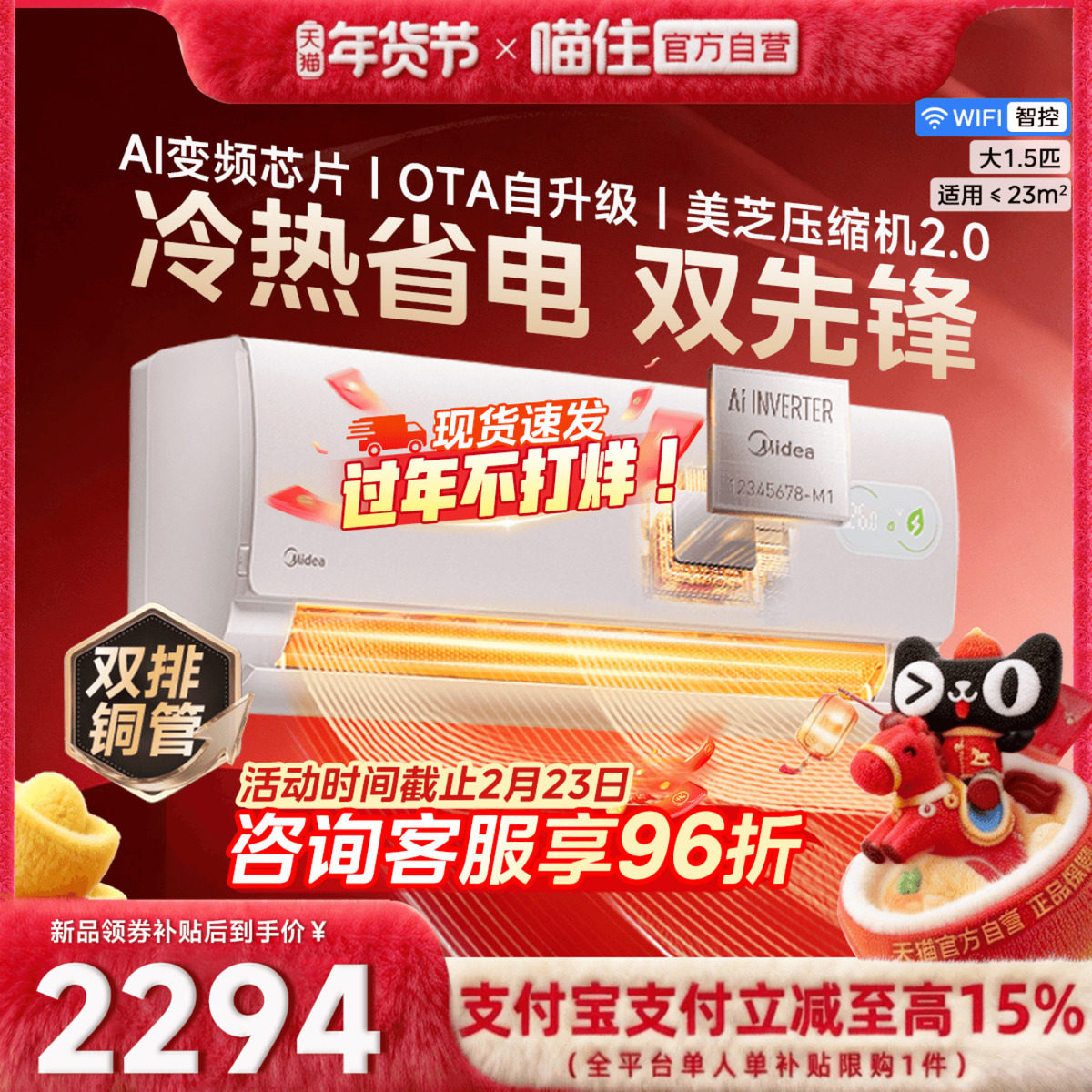 美的空调新一级能效家用大1.5匹2匹变频冷暖挂机2026款酷省电二代
