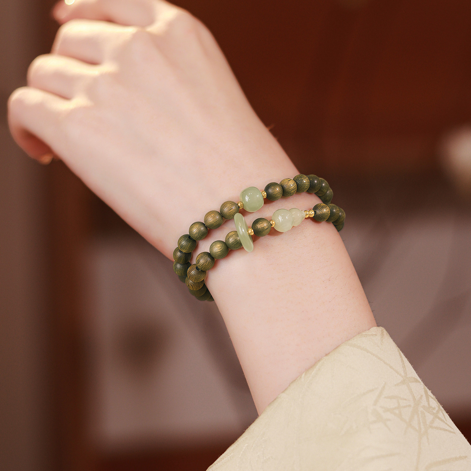绿檀木手串女款真品和田玉收藏级润葫檀葫芦天然绝美小众手链串珠