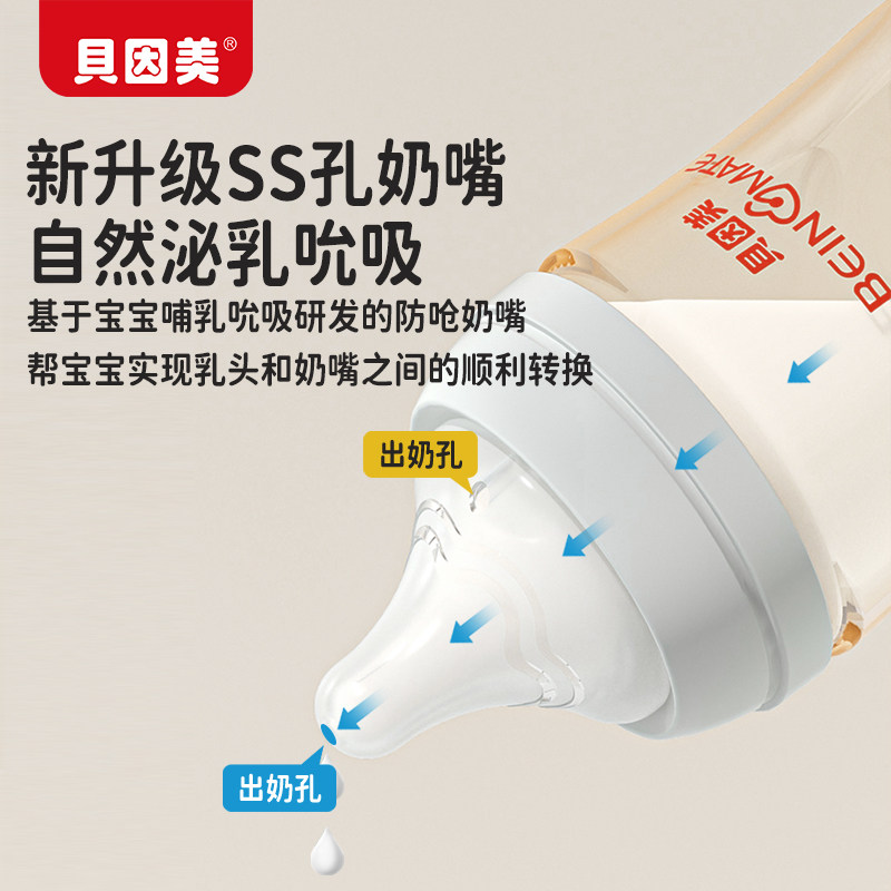 贝因美新生儿奶瓶婴儿PPSU防胀气高档宝宝初生专用防呛食品级奶嘴