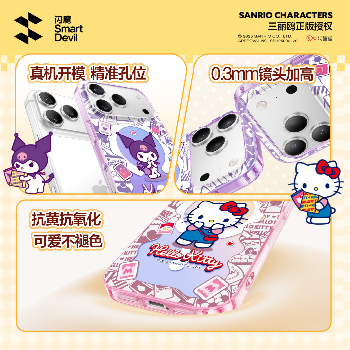 【三丽鸥正版授权】闪魔适用苹果17手机壳新款iPhone17promax磁吸保护套16pro可爱pm高级感镭射炫光全包外壳i