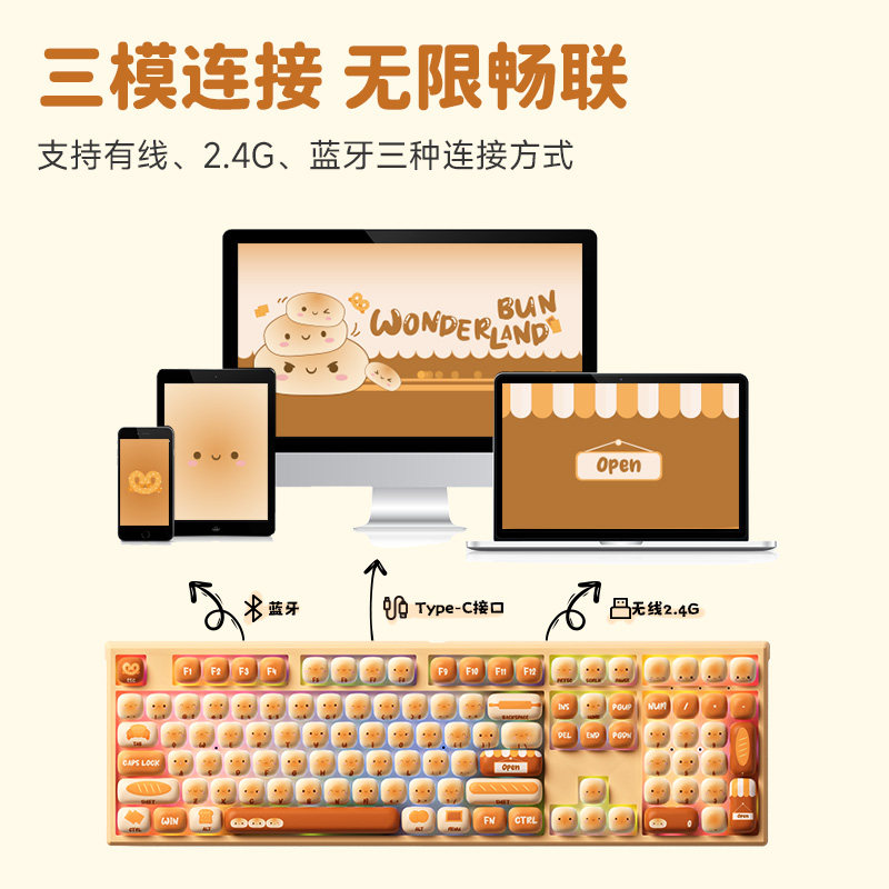 AKKO 馒头乐园机械键盘可爱女生办公游戏无线蓝牙高颜值键盘iapd