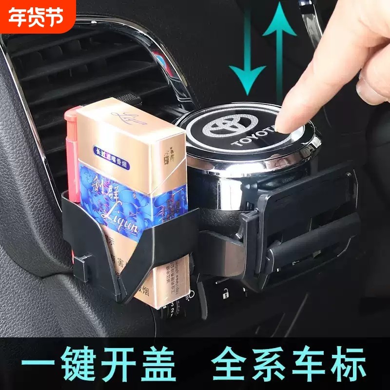 车载烟灰缸挂式汽车出风口悬挂车用带盖有灯LED车内座式车标烟缸