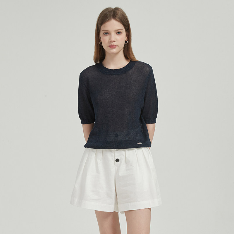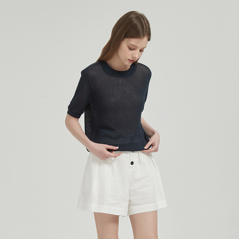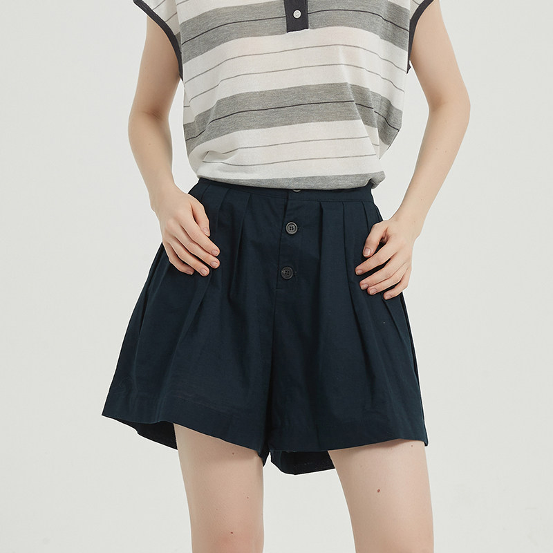 petit bari 简约三粒扣棉麻A字裙裤短裤 女