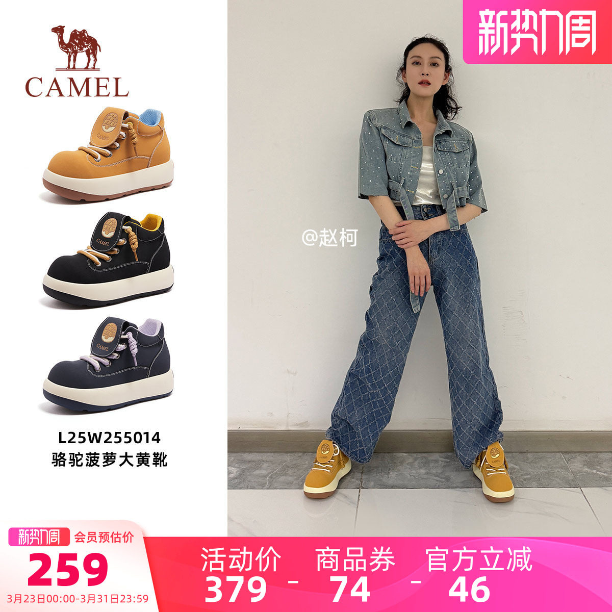 骆驼菠萝大黄靴女鞋2026春季新款复古松糕厚底马丁靴女大头短靴子