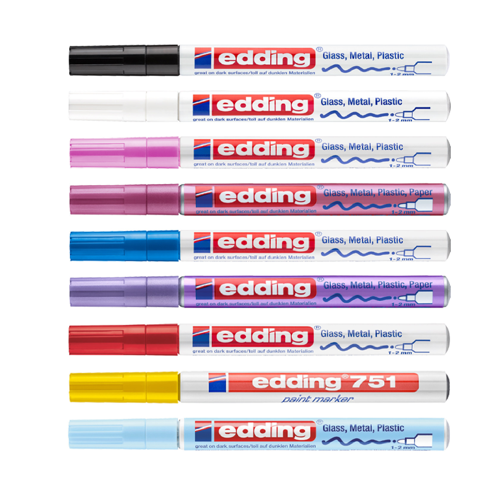 2支包邮 德国edding751油漆笔防水防油防酒精不掉色金属补漆记号笔白色速干