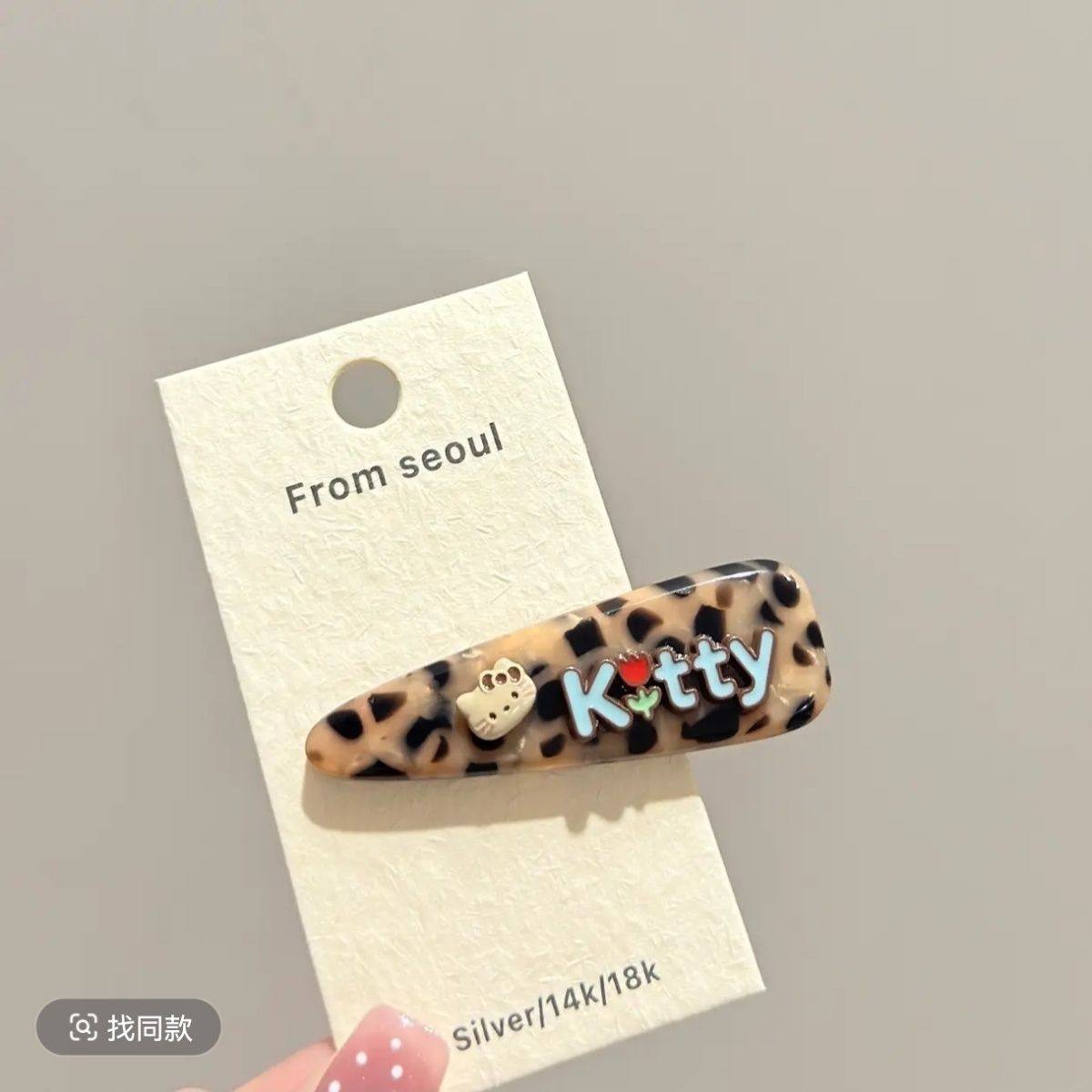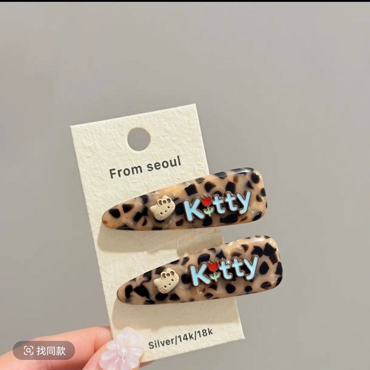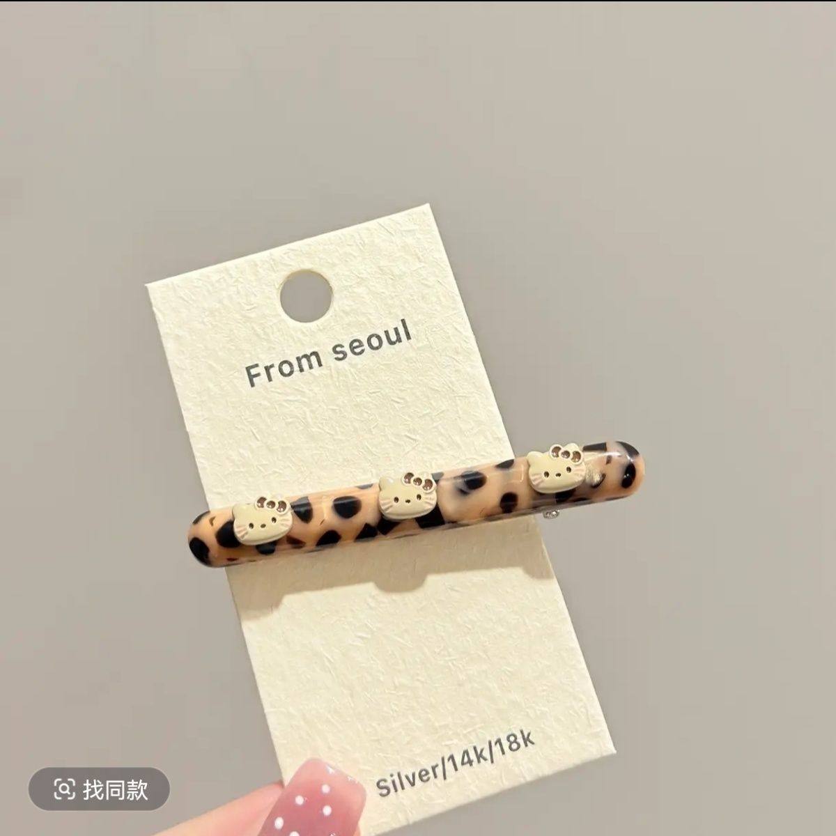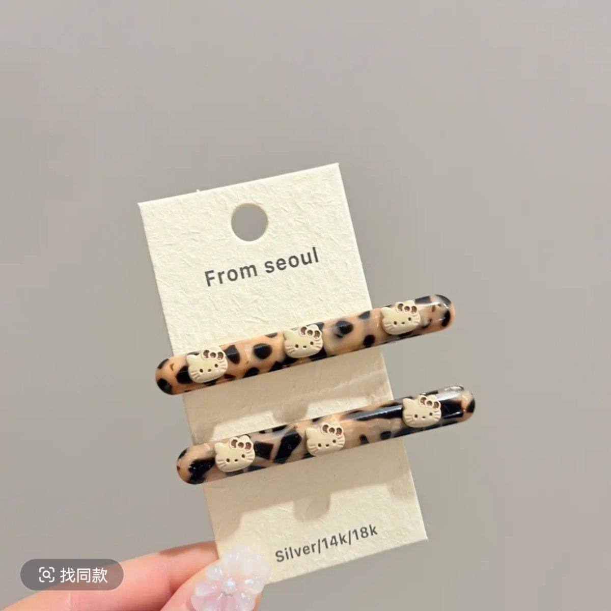 复古豹纹KT猫bb夹甜酷小女孩侧边刘海夹子碎发夹秋冬新款儿童发饰