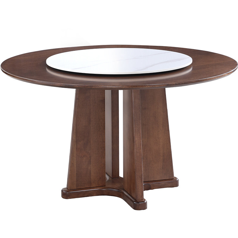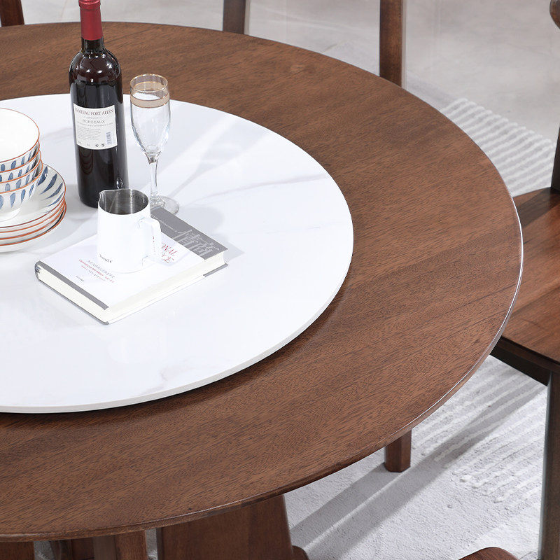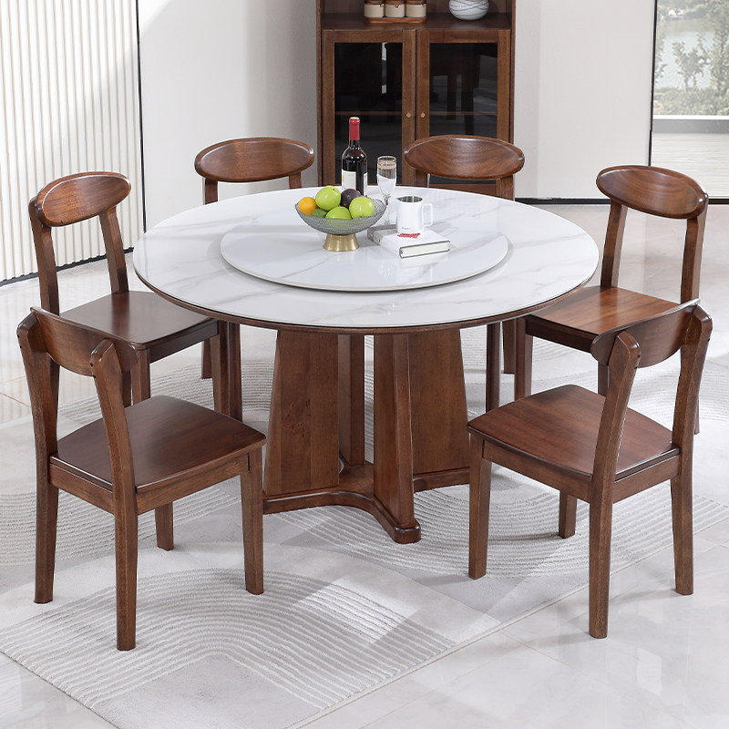 全实木餐桌椅子组合胡桃木家用圆形圆型小户型现代简约极简大圆桌