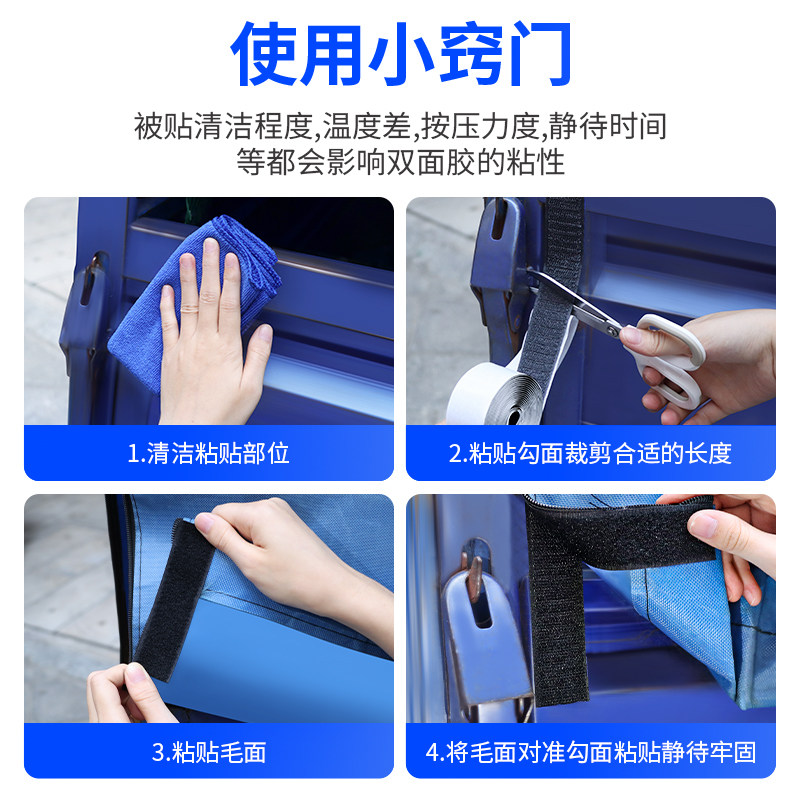 三轮车魔术贴强力粘电动车棚胶带篷布粘胶雨棚防风吹防漏风固定双面胶棚子粘胶遮雨棚雨帘窗帘门帘可拆卸背胶