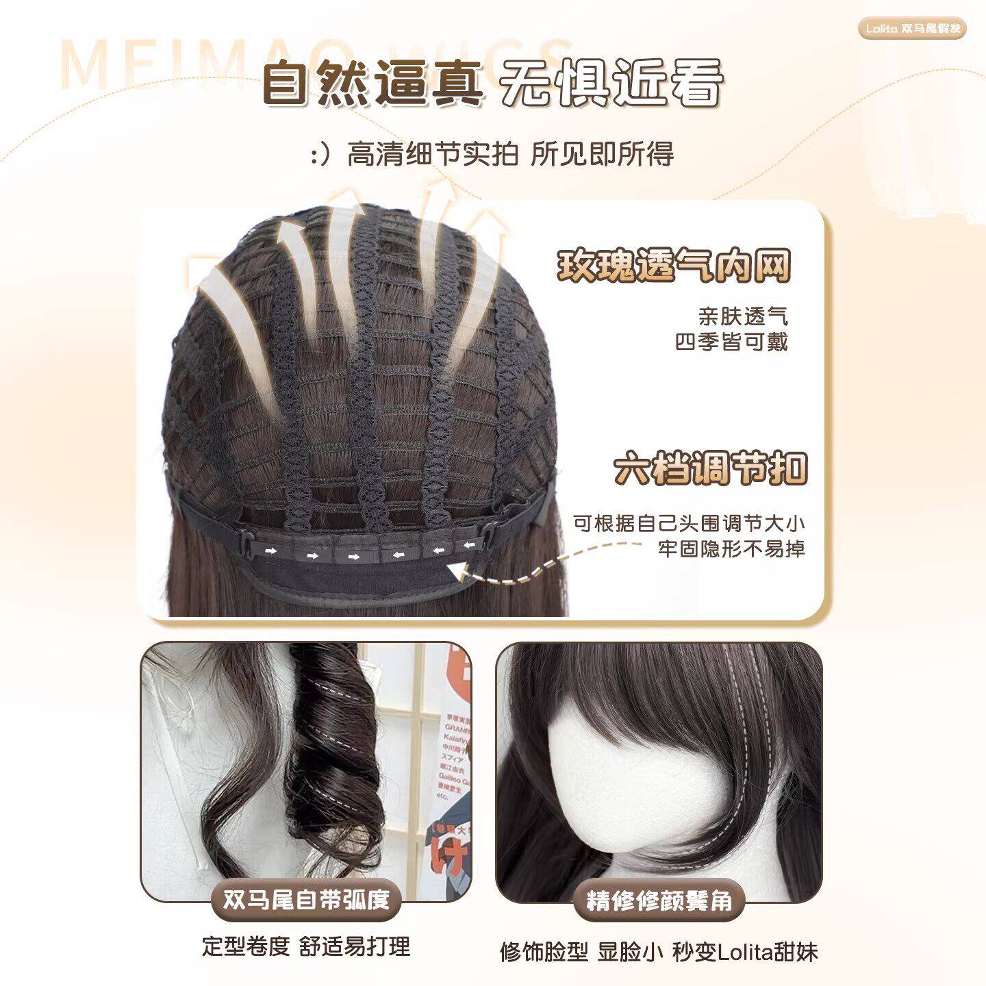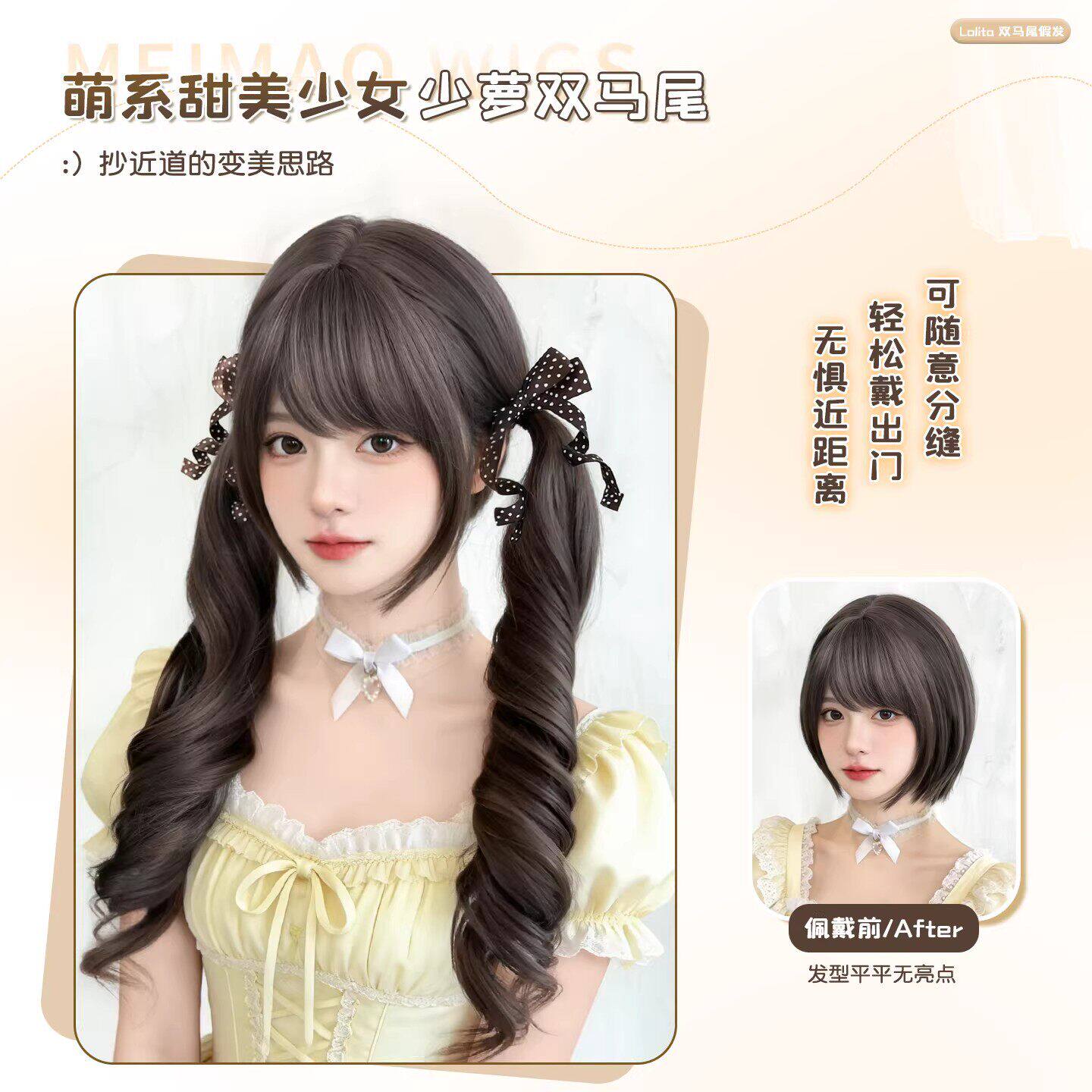 【心动跳跃】甜美少女双马尾假发lolita自然jk长卷发齐刘海假发套