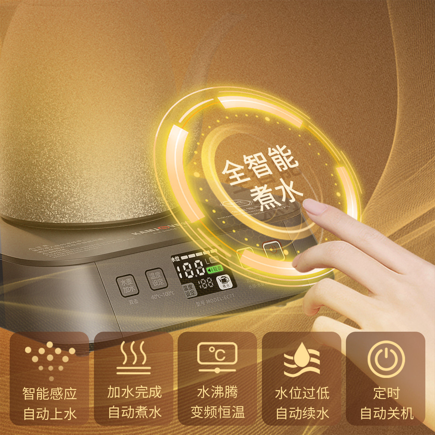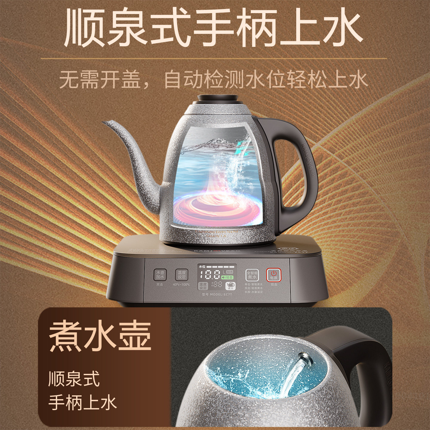 金灶EC7T纯钛烧水壶顺泉式上水全自动电热水壶家用保温一体茶壶