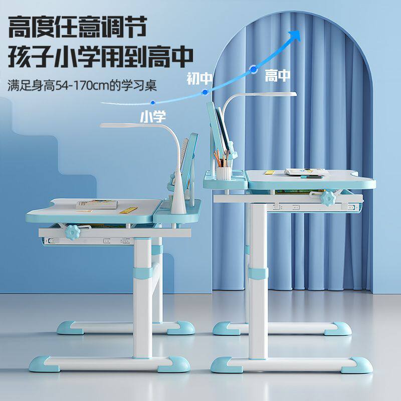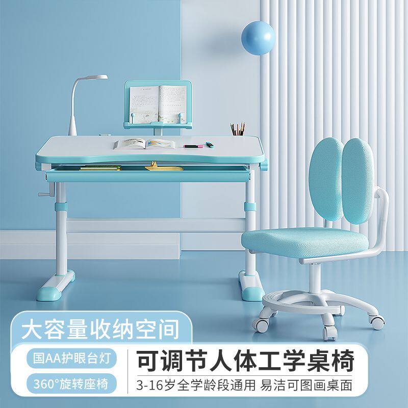 d学生家用儿童学习桌写字桌面可倾斜书桌课桌椅套装手摇升降桌子