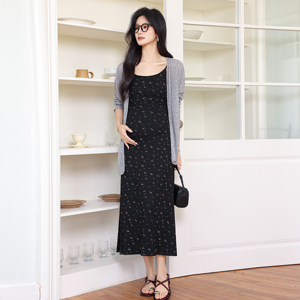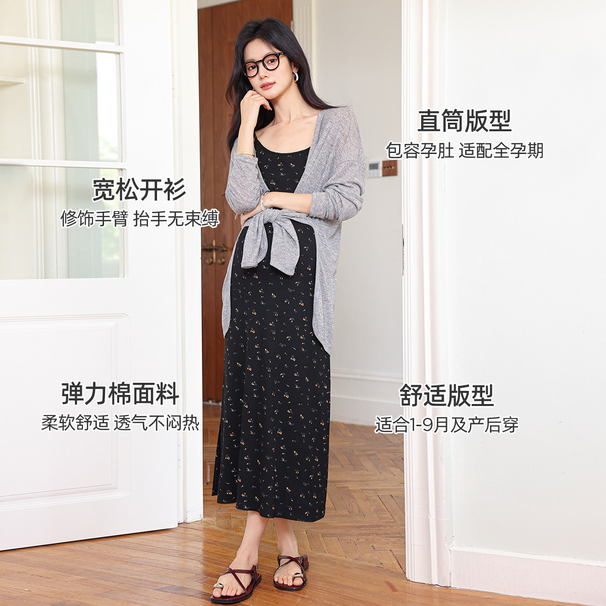 婧麒孕妇连衣裙2026春秋新款度假风碎花吊带裙慵懒风开衫时髦套装