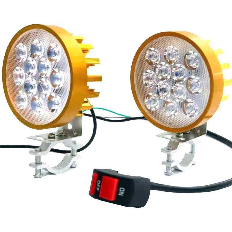 电动车摩托车超亮LED射灯三轮车大灯改装外置聚光12-80伏电瓶爆闪