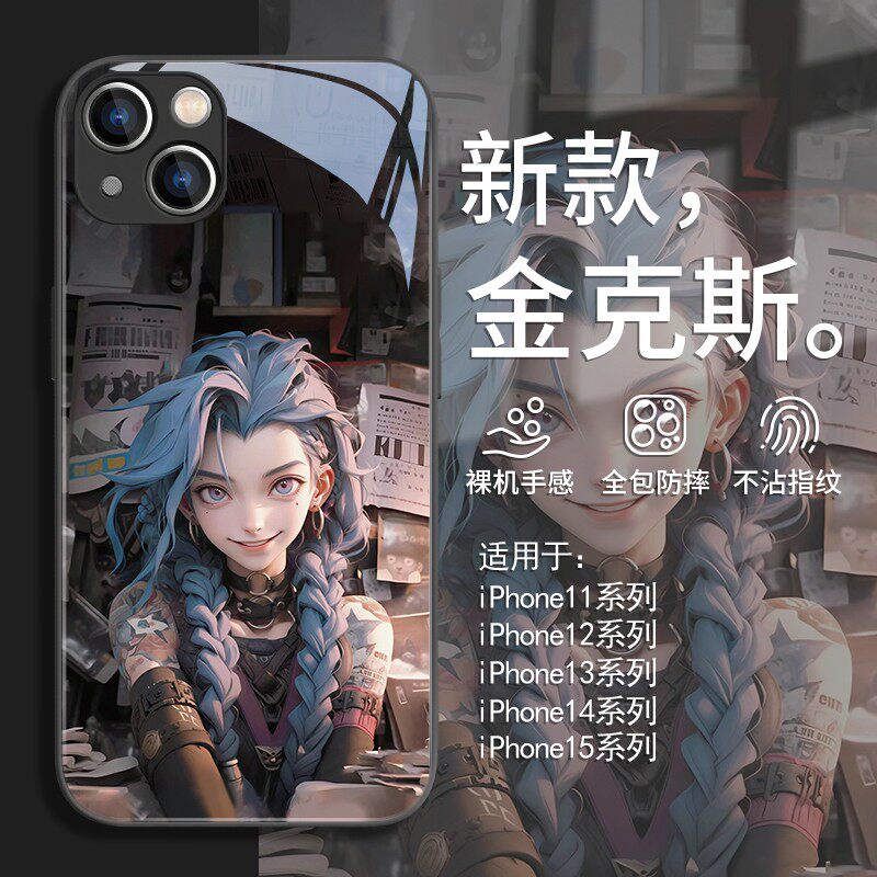 金克斯适用iphone17手机壳苹果16周边15promax/14英雄联盟12/13暴走萝莉女11新款xsmax男xr高级感x玻璃8plus