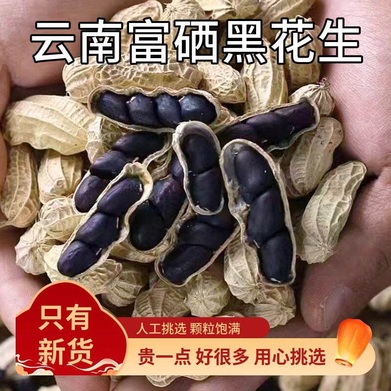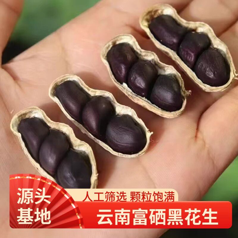 2025年新货云南小颗粒富硒黑花生普洱特产生吃带壳黑皮花生米味甜