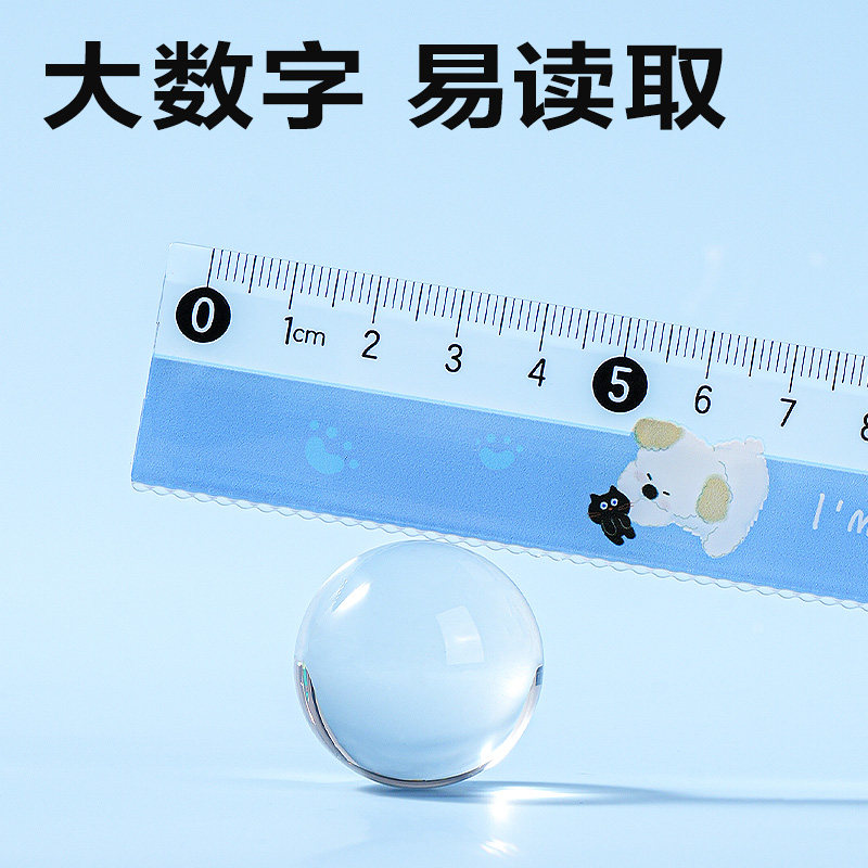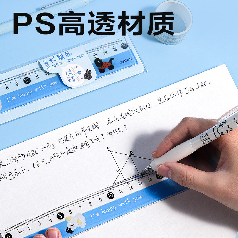 得力大数字透明直尺尺子卡通15m格尺波浪线长塑料尺计算尺一二年级文具高颜值设计专用20cm直尺用品小学生
