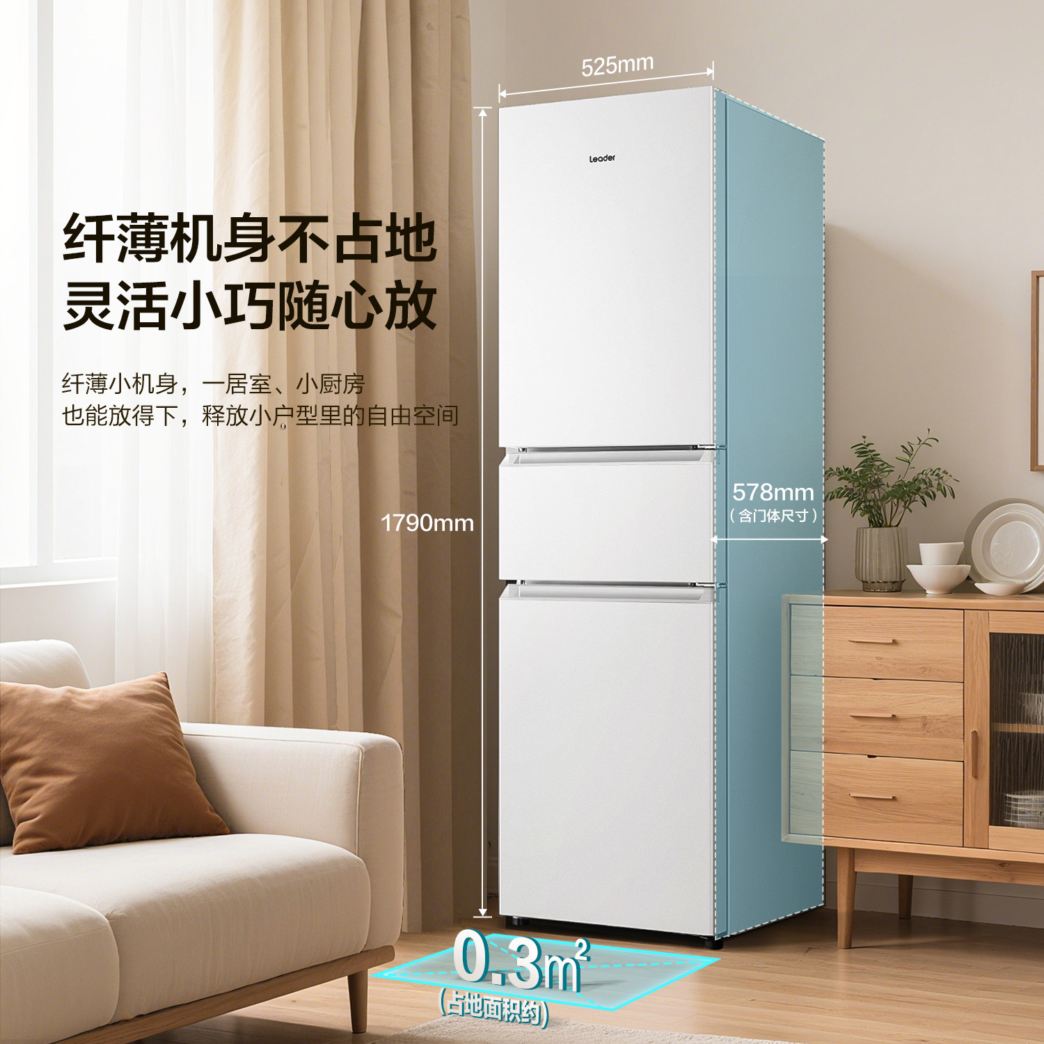 换新补贴海尔出品统帅217L三开门一级变频无霜租房家用小冰箱官方