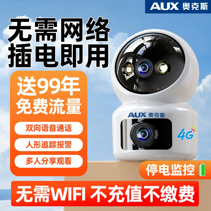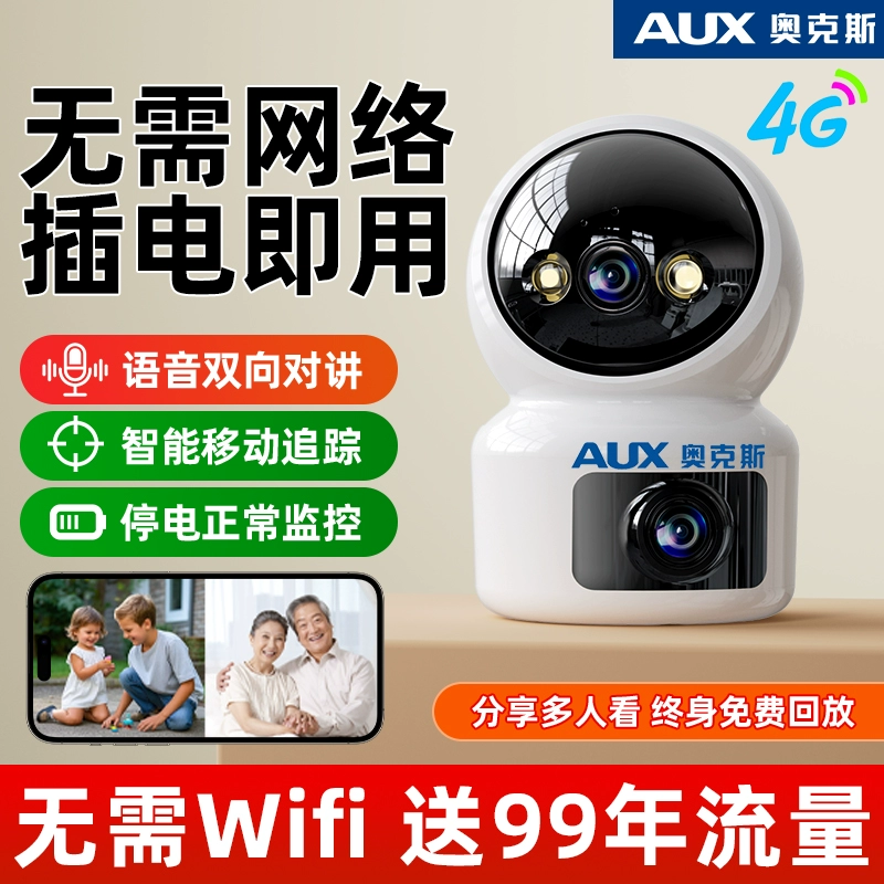 摄像头奥克斯监控家用手机远程无需wifi网络4G终身免费流量摄影头