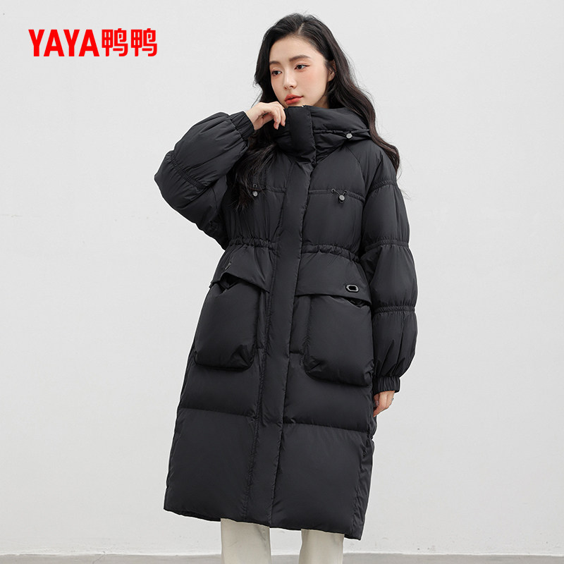 鸭鸭羽绒服女款2025年秋冬长款连帽加厚韩版时尚休闲保暖厚外套C
